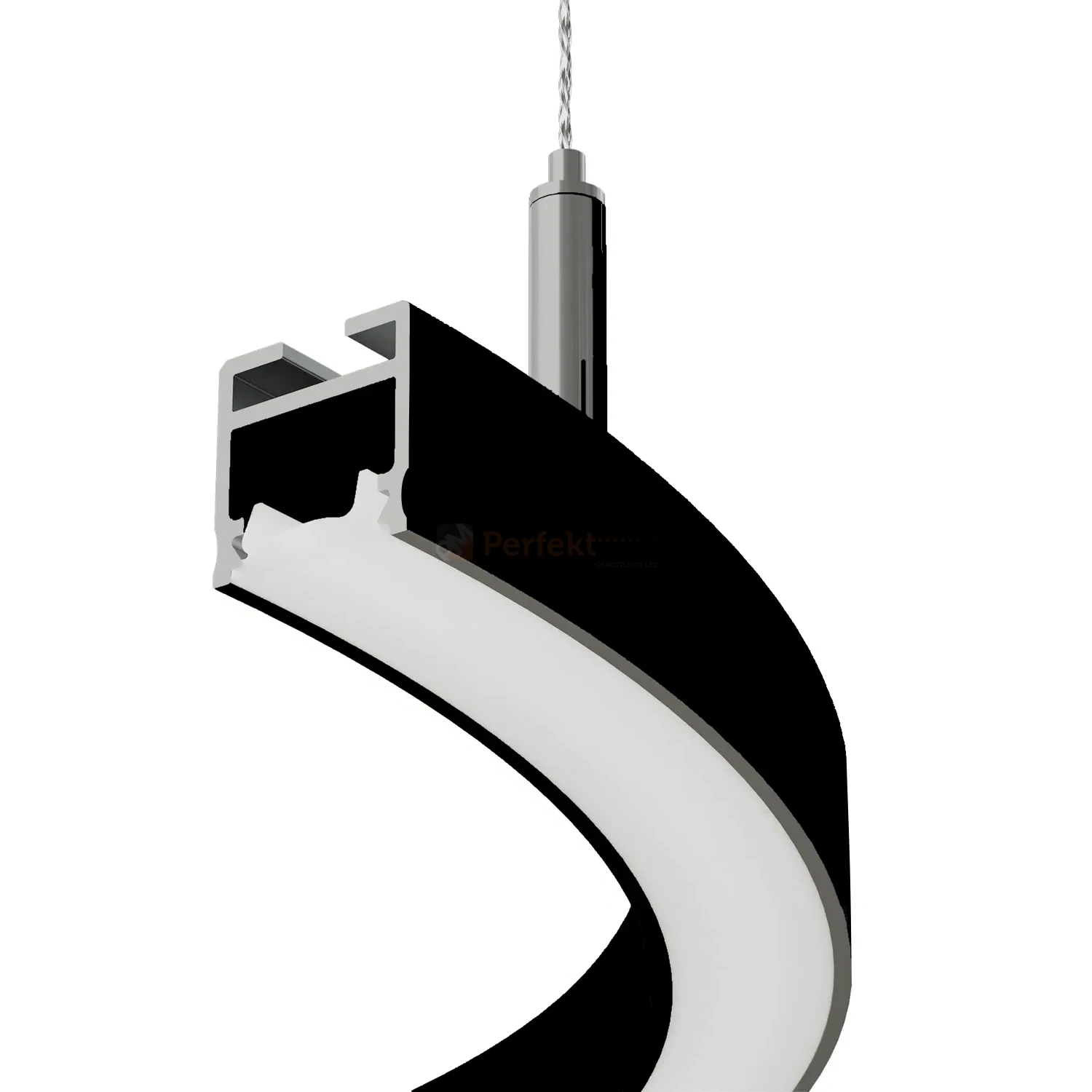 Profil pozwala budować ciągłe, zakrzywione linie światła przy zachowaniu wysokiej stabilności oraz estetyki oprawy. Po wygięciu nie traci parametrów mechanicznych ani optycznych — bez niepożądanych odkształceń, „załamań” linii światła czy spadku jakości efektu.