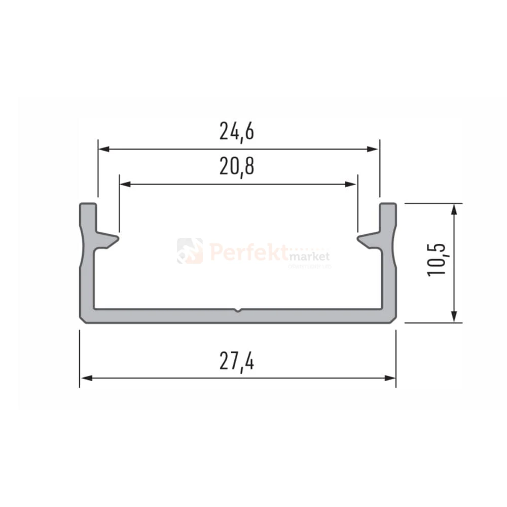 Aluminiowy profil do montażu napowierzchniowego.