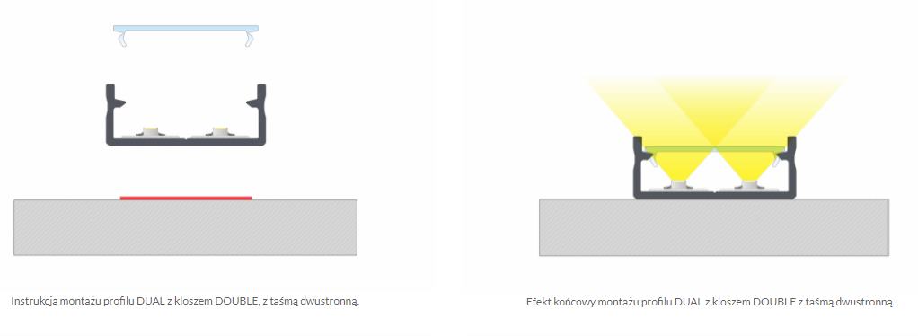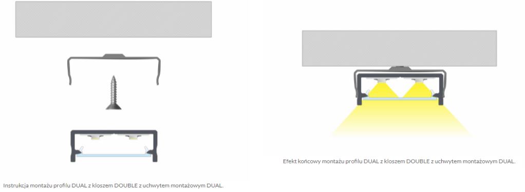 Schemat złożenia elementów systemu oświetleniowego z wykorzystaniem profilu DUAL oraz: