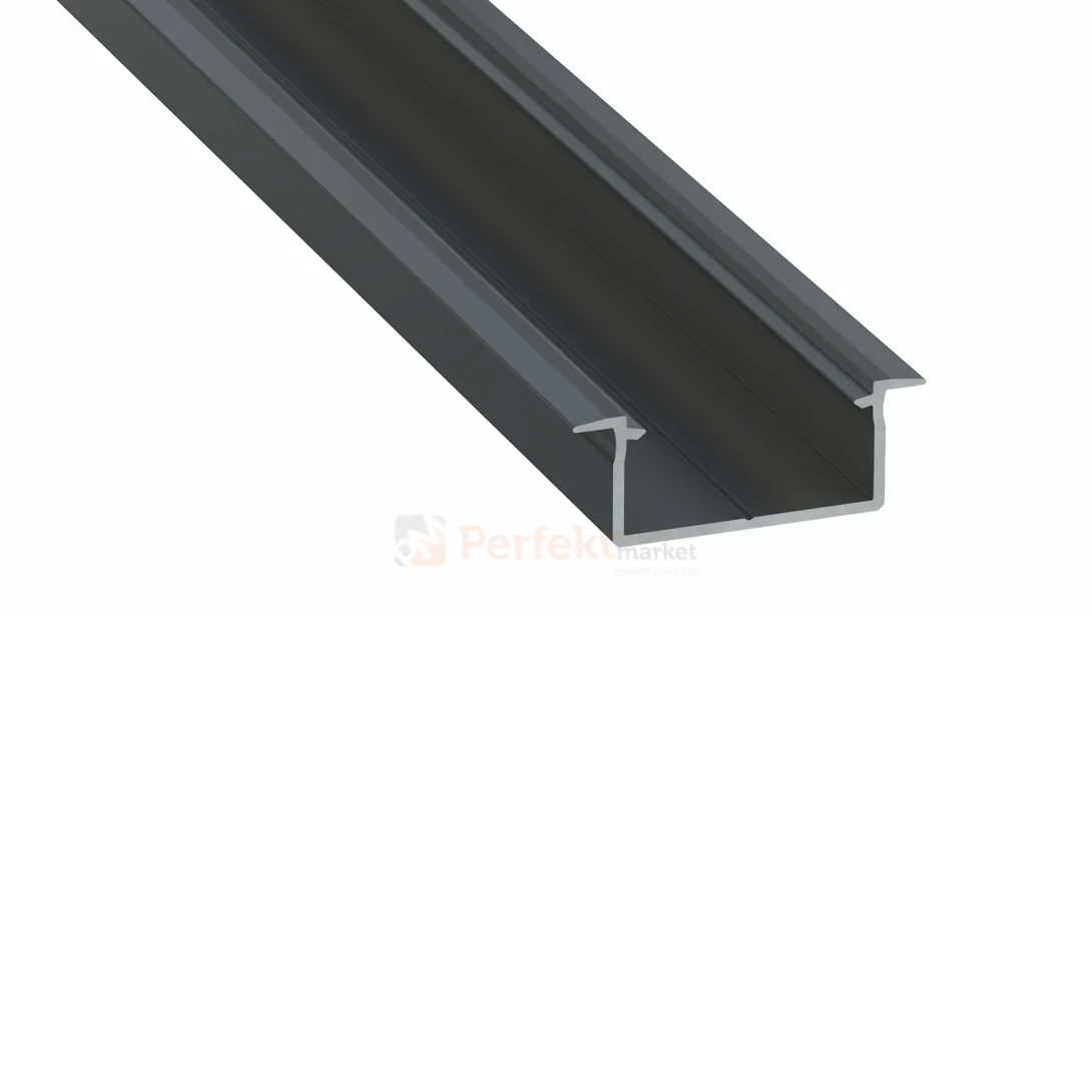Profil aluminiowy do taśm LED, czarny anodowany. GEMI wpuszczany na 2 taśmy LED- bez przesłony.