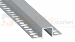 Profil aluminiowy anodowany do taśm LED wpuszczany do obróbki gładzią, szpachlą, tynkiem. Konstrukcja profilu GAUDI umożliwia jego montaż w płytach Regips, ścianach, sufitach betonowych uzyskując efekt widocznego tylko klosza.