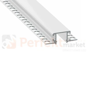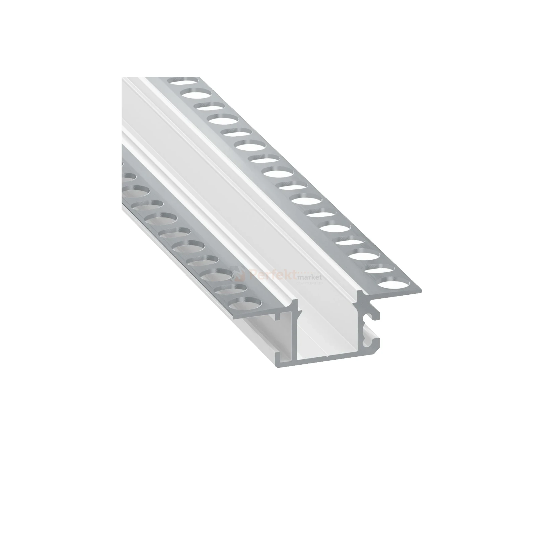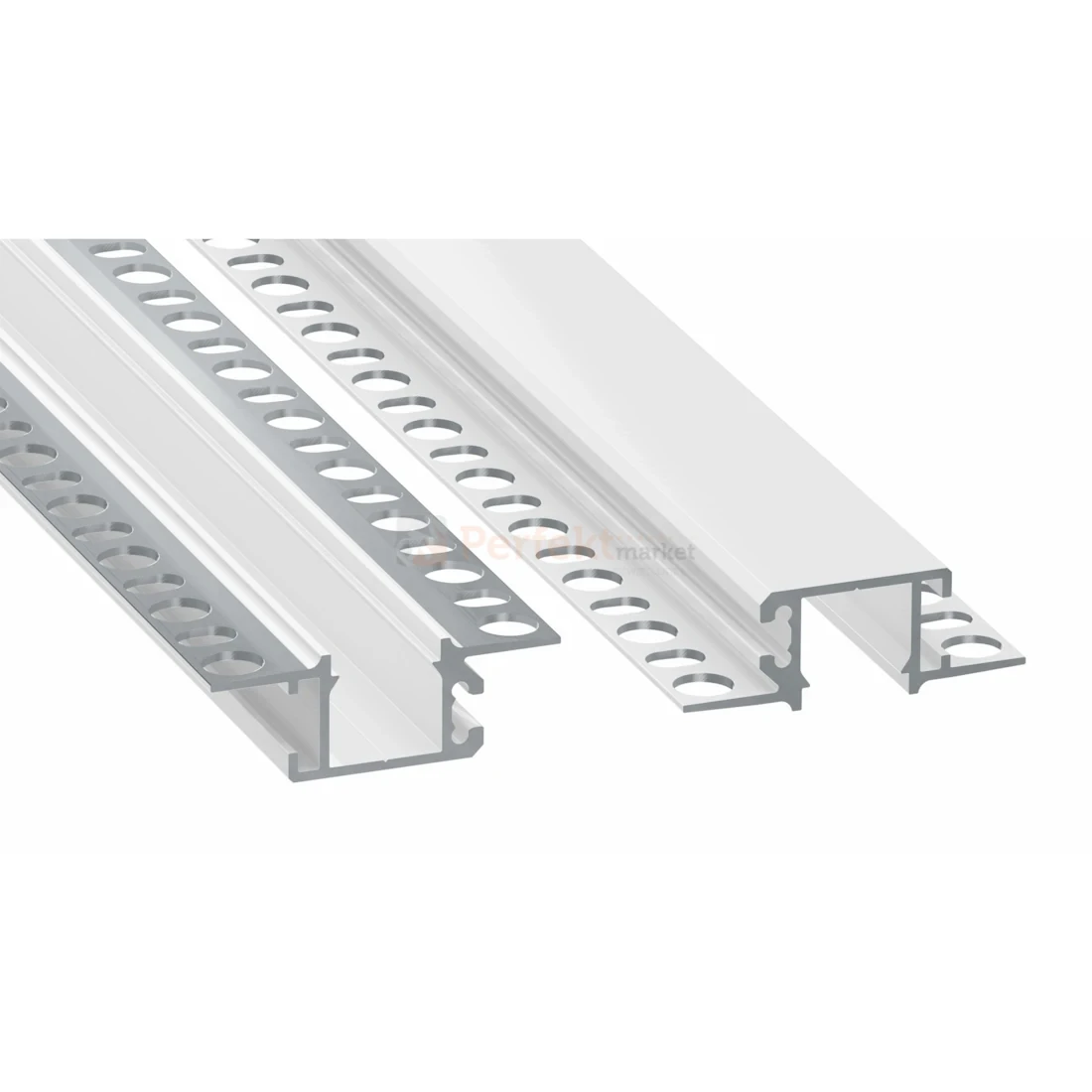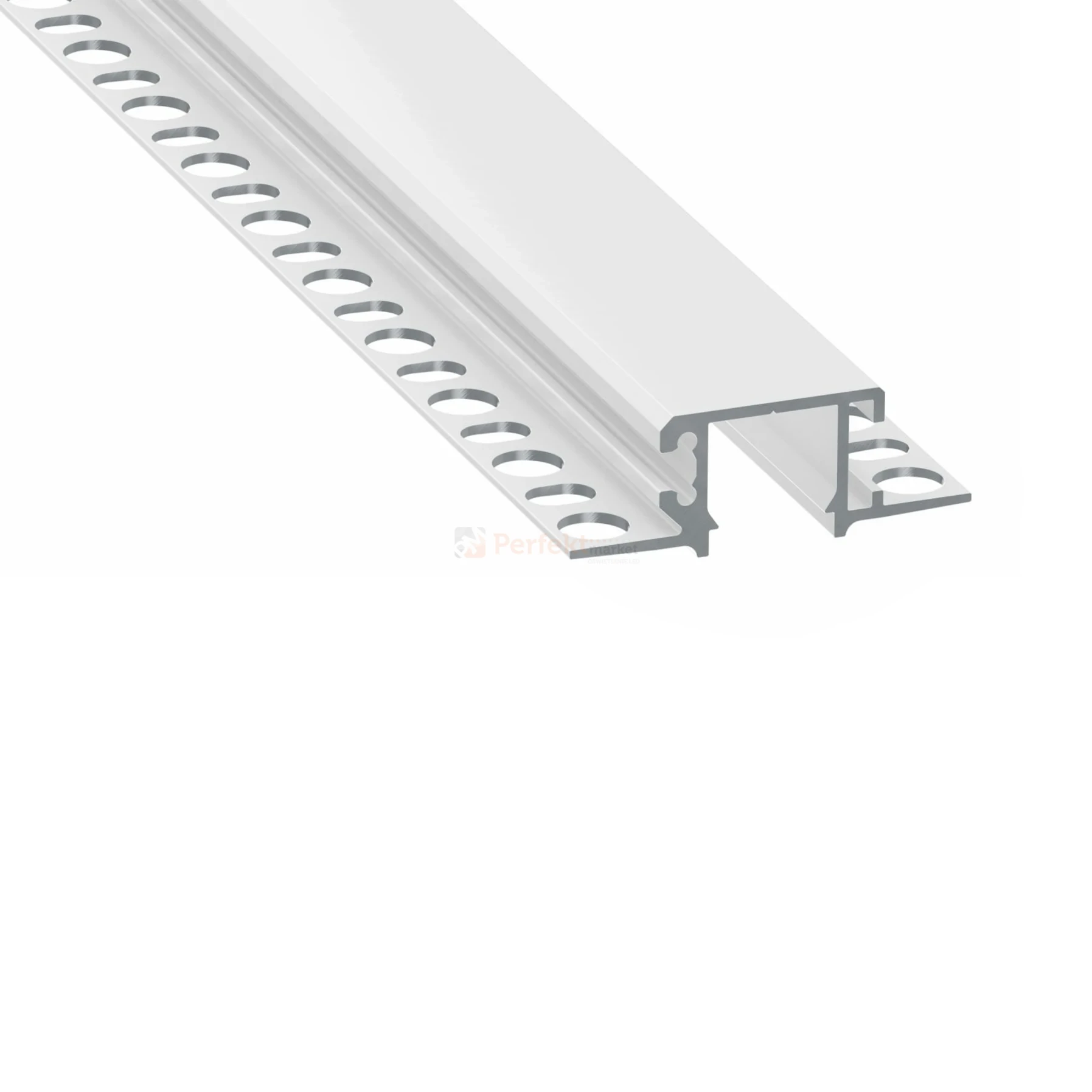 Biały profil aluminiowy do taśm LED wpuszczany do obróbki gładzią, szpachlą, tynkiem. Konstrukcja profilu MONO umożliwia jego montaż w płytach Regips, ścianach, sufitach betonowych uzyskując efekt widocznego tylko klosza.