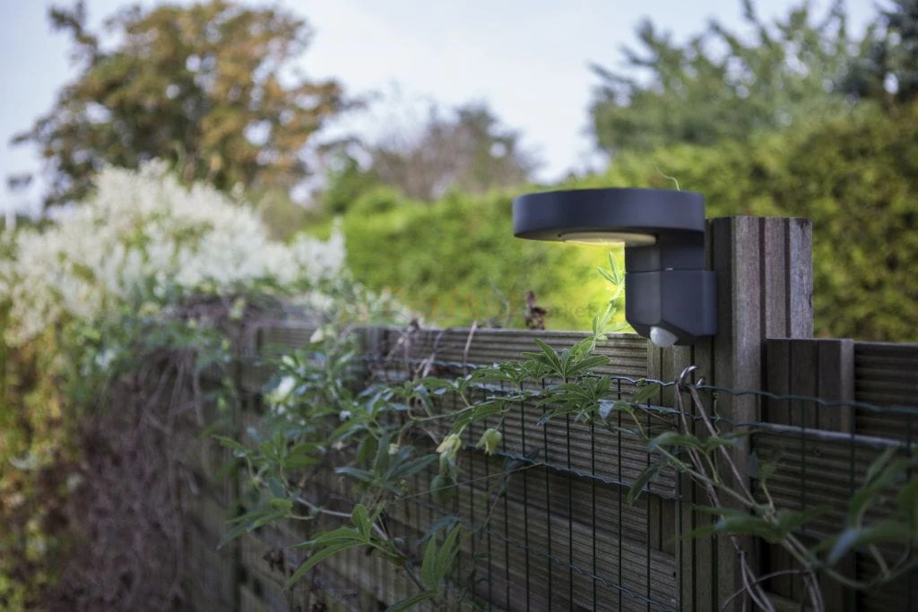 Pomysłowo zaprojektowany kinkiet solarny z doskonale zintegrowanym panelem słonecznym. Gotowy do uchwycenia pełnego światła słonecznego. Ruchoma głowica skieruje wiązkę światła w wybrane miejsce. W zestawie z czujnikiem ruchu PIR, który zapewnia pełne oświetlenie za każdym razem, gdy ktoś przechodzi.
