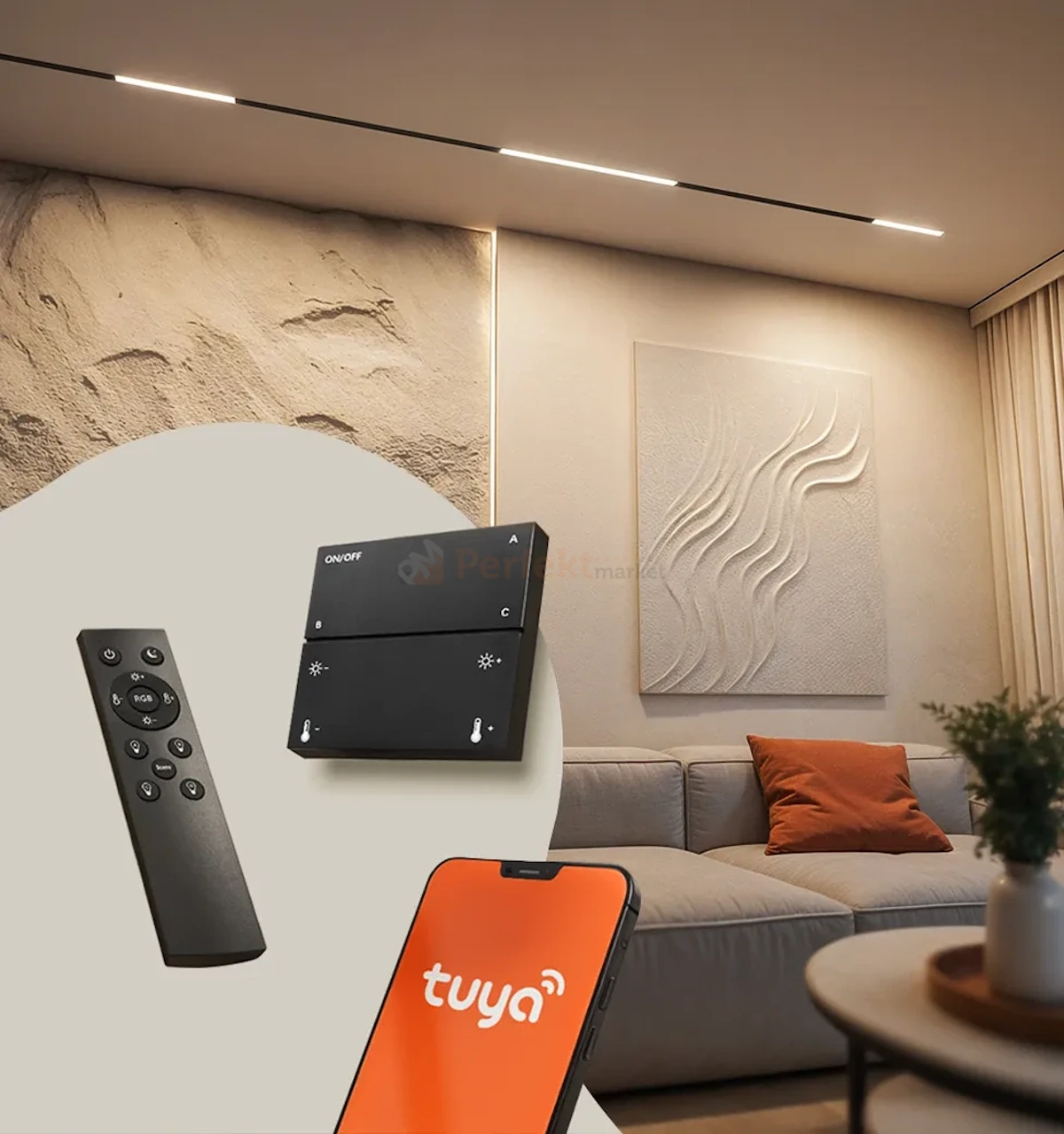 Wbudowany moduł komunikuje się za pomocą bramki z systemem Tuya Smart, który pozwala zarządzać oświetleniem również spoza domu, tworząc scenariusze i automatyzacje. Bez użycia bramki za pomocą aplikacji i pilota można zarządzać oprawą lokalnie, zmieniać barwę światła oprawy w zakresie 2500K–6500K, ściemniać oprawę a także tworzyć strefy.