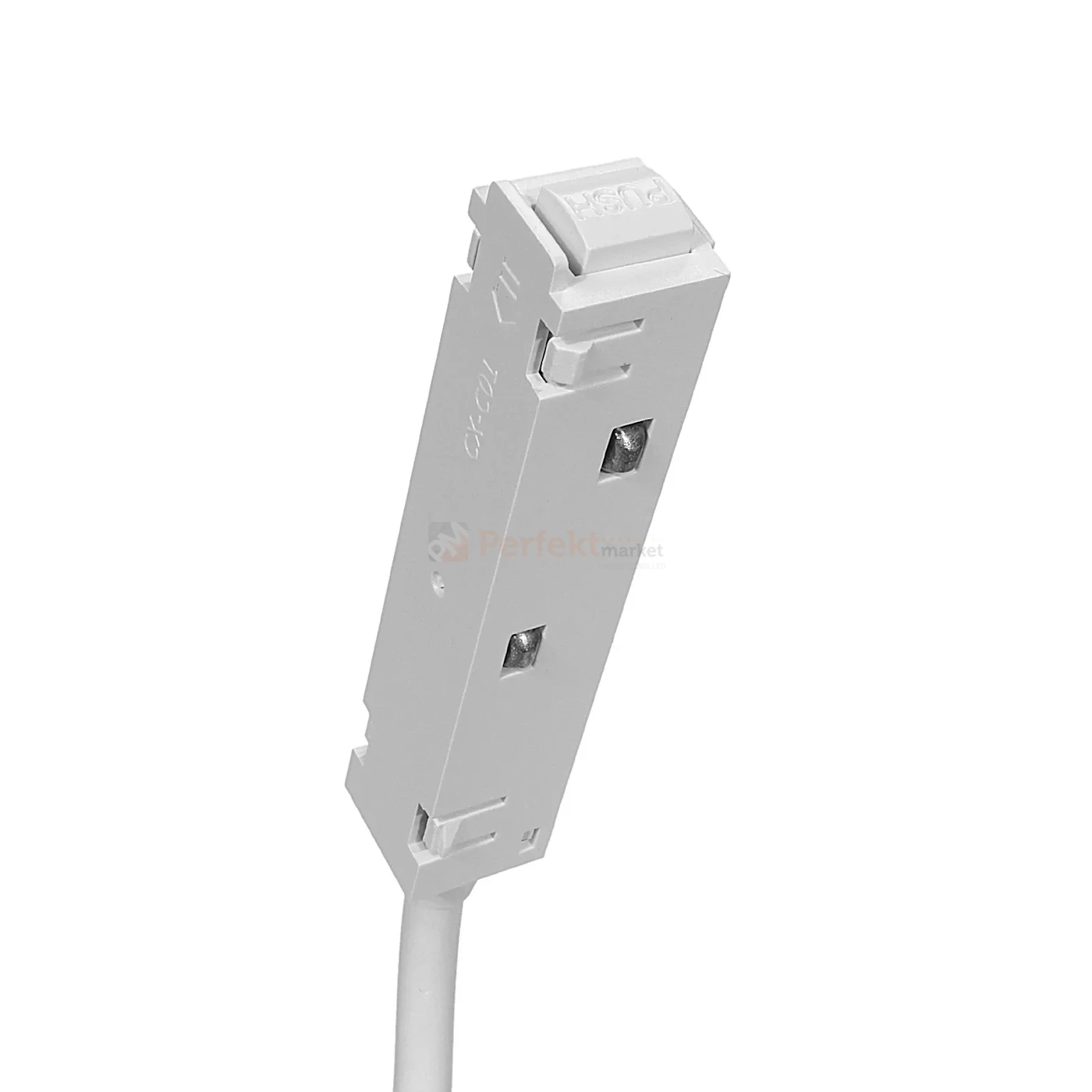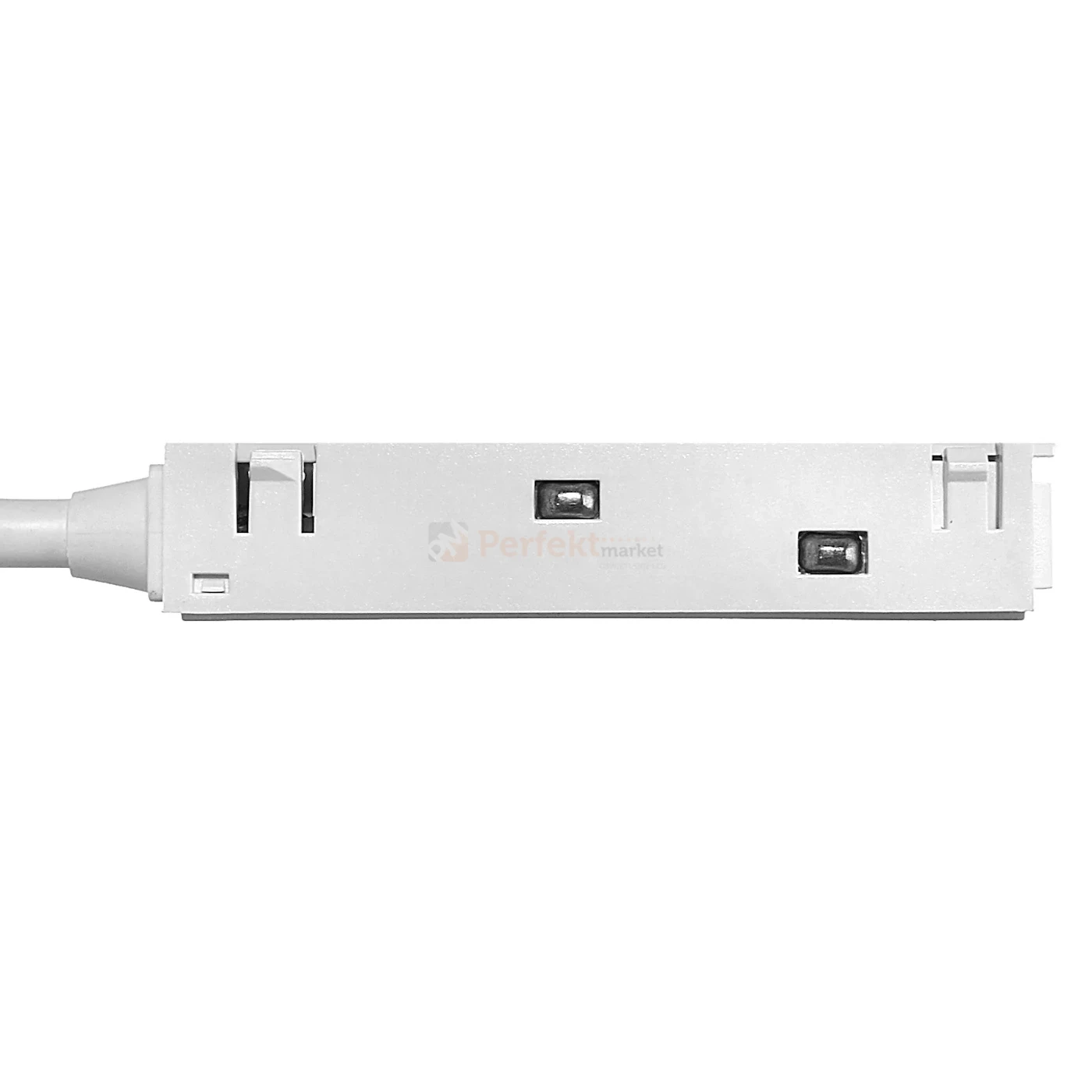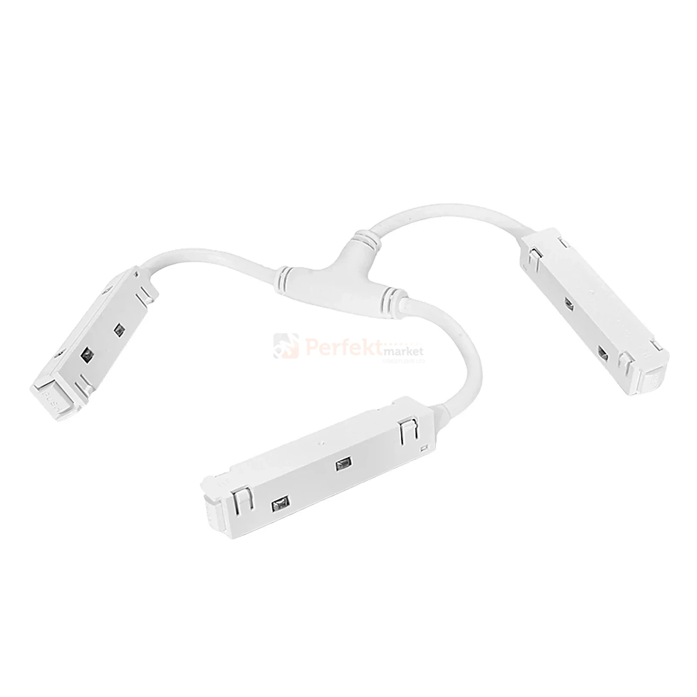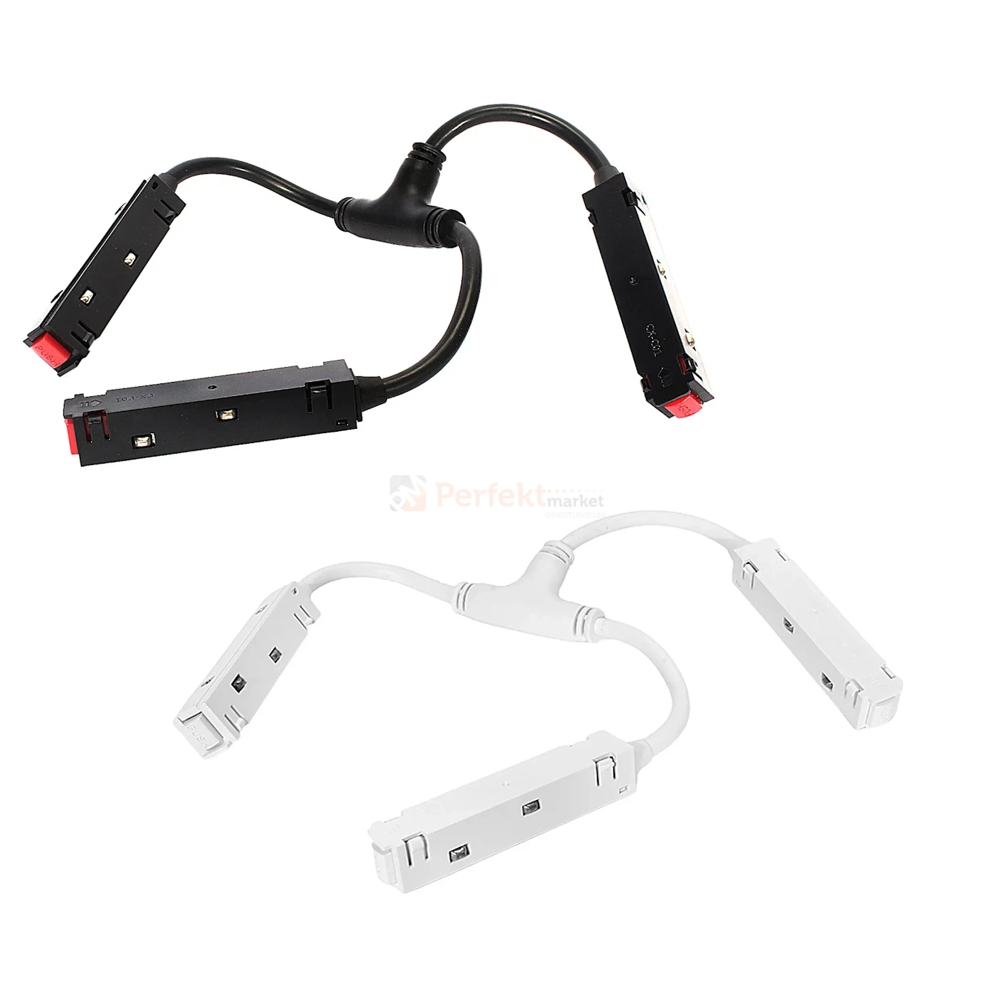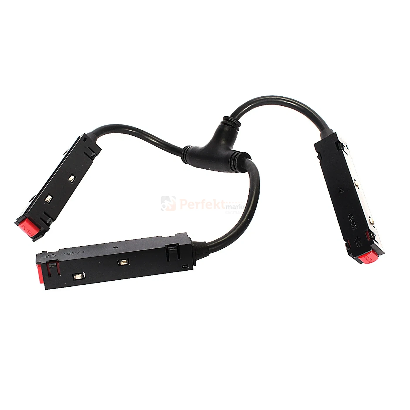 Złącze potrójne w kształcie litery T przeznaczone do systemu szyn magnetycznych serii LL-BX umożliwia wykonanie rozgałęzienia instalacji w trzech kierunkach przy jednoczesnym zachowaniu ciągłości zasilania. Element pełni funkcję mechanicznego i elektrycznego łącznika, pozwalając na budowę elastycznych układów oświetleniowych bez konieczności ingerencji w stałą infrastrukturę.