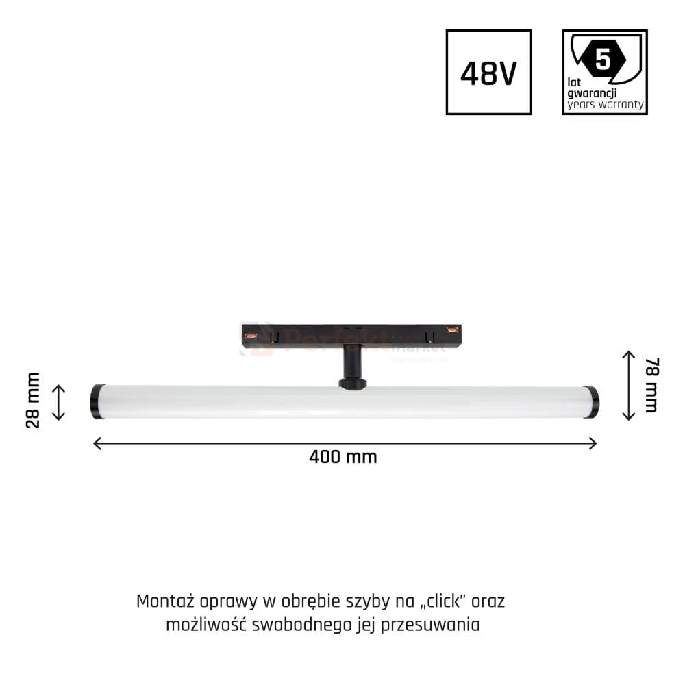 Niskie napięcie zasilania szyn jest w pełni bezpieczne i pozwala na montaż w suchych pomieszczeniach.