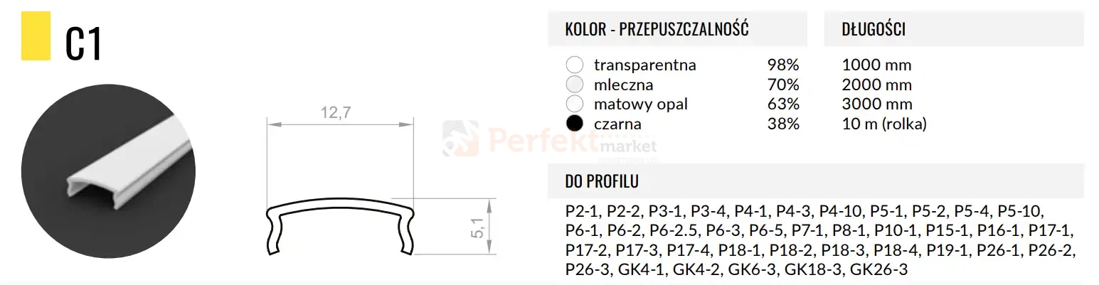 Klosz przeznaczony do montażu w profilach: P2-1, P2-2, P3-1, P3-4, P4-1, P4-3, P4-10, P5-1, P5-2, P5-4, P5-10, P6-1, P6-2, P6-2.5, P6-3, P6-5, P7-1, P8-1, P10-1, P15-1, P16-1, P17-1, P17-2, P17-3, P17-4, P18-1, P18-2, P18-3, P18-4, P19-1, P26-1, P26-2, P26-3, GK4-1, GK4-2, GK6-3, GK18-3, GK26-3