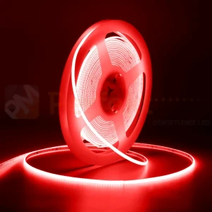 Taśma LED COB czerwona ultra slim 5mm na podwójnym podkładzie PCB 2oz to jeden z najnowszych modeli taśm o zminimalizowanej szerokości. Dzięki bardzo dużej ilości diod, możliwe jest uzyskanie jednolitej linii świetlnej nawet przy niskich profilach aluminiowych. Wysoki współczynnik oddawania barw CRI Ra>85 gwarantuje piękne kolory oświetlanych przedmiotów, wnętrz.