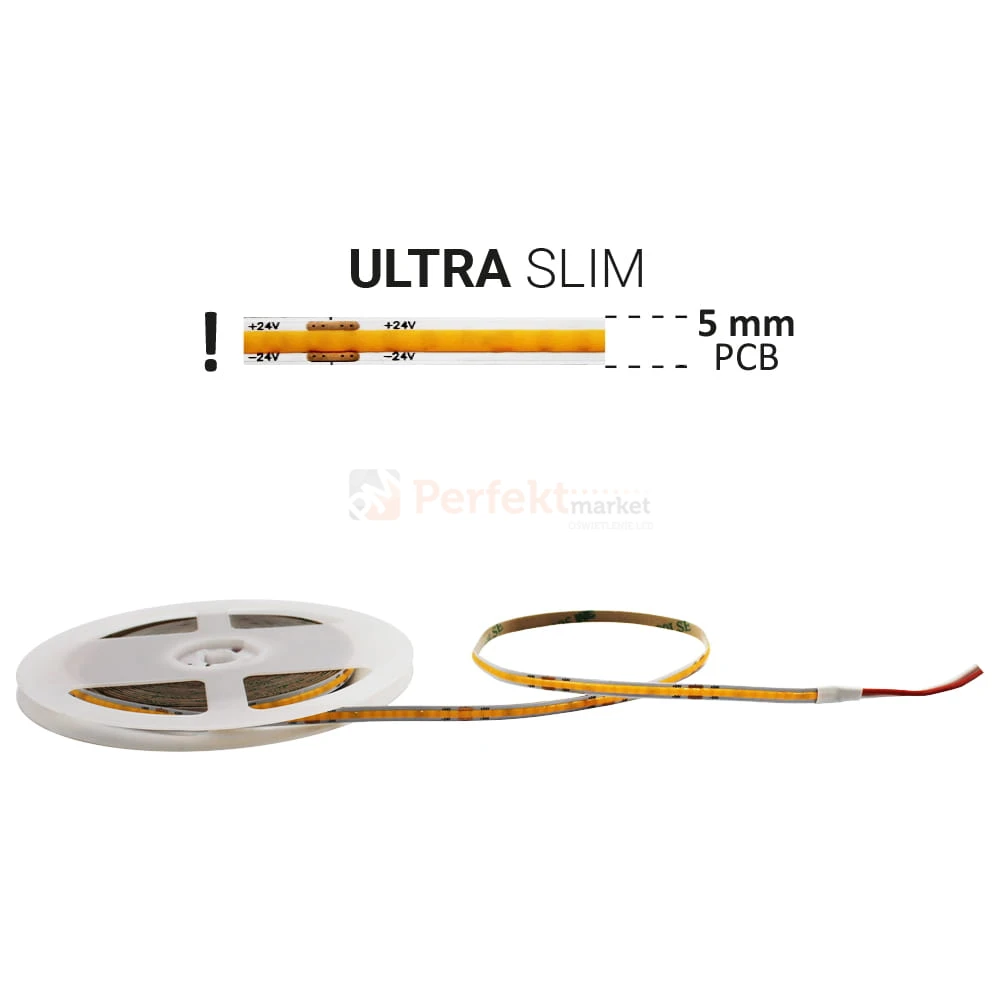 Taśma LED COB ultra slim 5mm 24V IP20 seria profesjonalnych linii świetlnych.