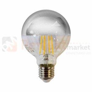 Dekoracyjna żarówka LED filament o mocy 5W i barwie światła białej ciepłej 3000K. W połowie posrebrzana filamentowa żarówka LED G80 to oszczędne źródło światła, perfekcyjnie sprawdzające się jako element dekoracji.