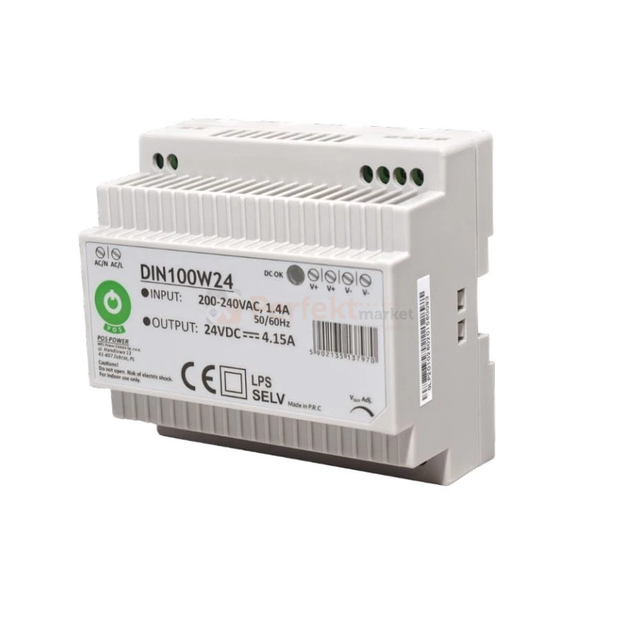 Zasilacz POS POWER DIN100W24 na szynę DIN. 24V, 4,15A, 100W