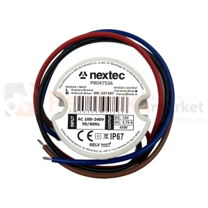 Zasilacz LED dopuszkowy o mocy 45W i napięciu wyjściowym 12V 3,75A.