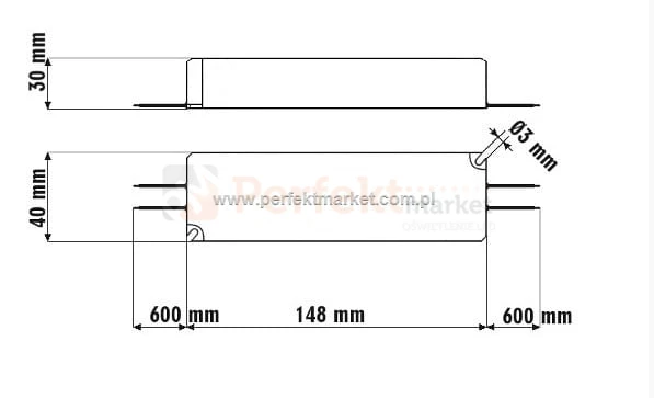 - Wymiary: dł. 148 mm; szer. 40 mm; wys. 30 mm