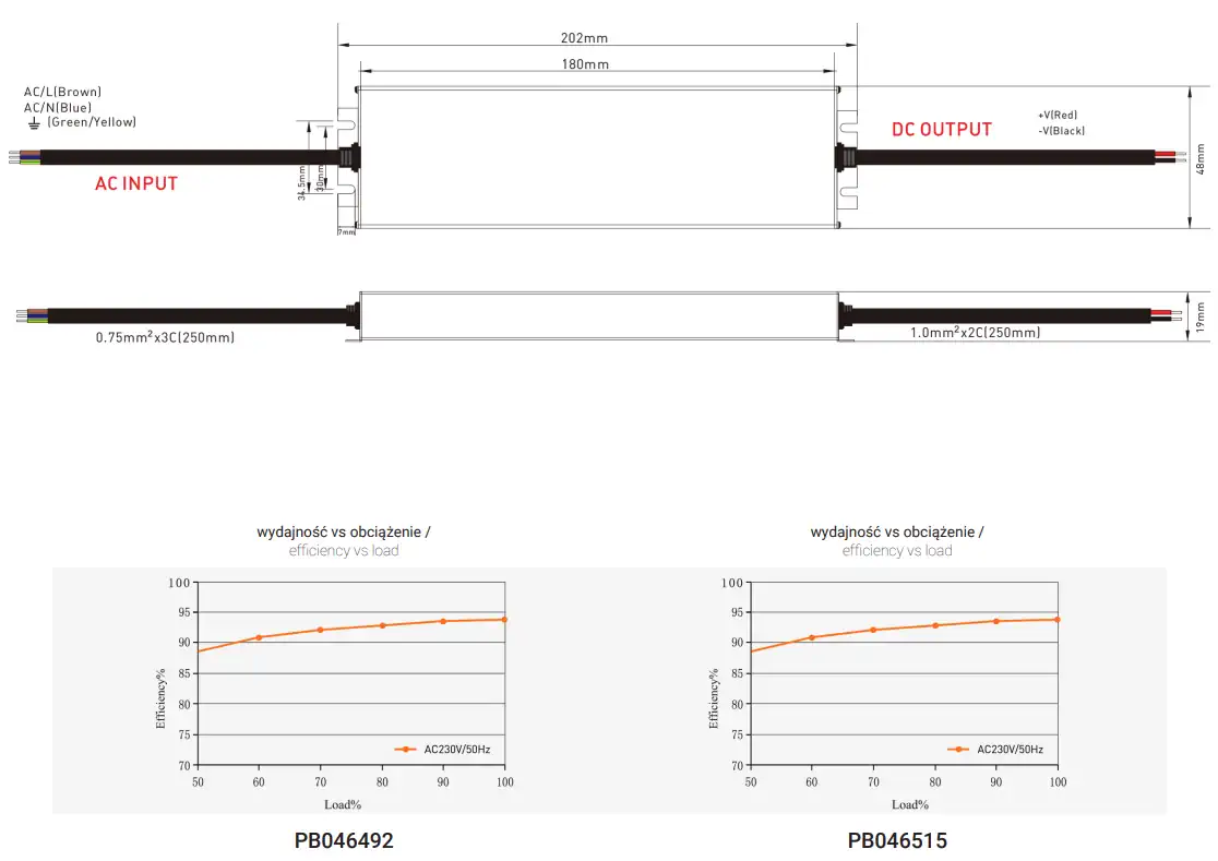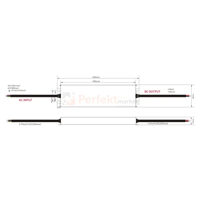 - Normy bezpieczeństwa: CE, RoHS, SELV I/P-O/P:3750Vac, I/P-O/P: 100MΩ/500VDC/25°C/70%RH, IEC/EN61347 IEC/EN60950 IP67 EN55015:2013;FCC Part 15B;EN61547:2009 EN61000-3-2:2014EN61000-3-3:2013