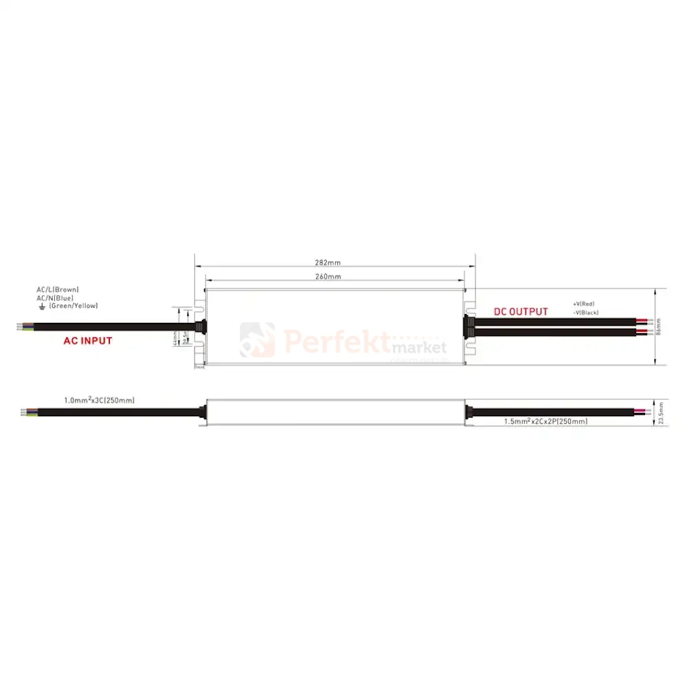 - Normy bezpieczeństwa: CE, RoHS, SELV I/P-O/P:3750Vac, I/P-O/P: 100MΩ/500VDC/25°C/70%RH, IEC/EN61347 IEC/EN60950 IP67 EN55015:2013;FCC Part 15B;EN61547:2009 EN61000-3-2:2014EN61000-3-3:2013