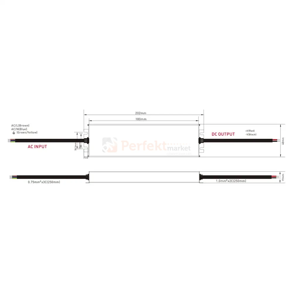 - Normy bezpieczeństwa: CE, RoHS, SELV I/P-O/P:3750Vac, I/P-O/P: 100MΩ/500VDC/25°C/70%RH, IEC/EN61347 IEC/EN60950 IP67 EN55015:2013;FCC Part 15B;EN61547:2009 EN61000-3-2:2014EN61000-3-3:2013