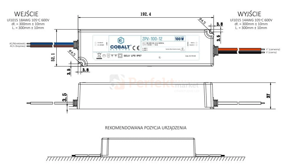 - Typ: zasilacz hermetyczny stałonapięciowy