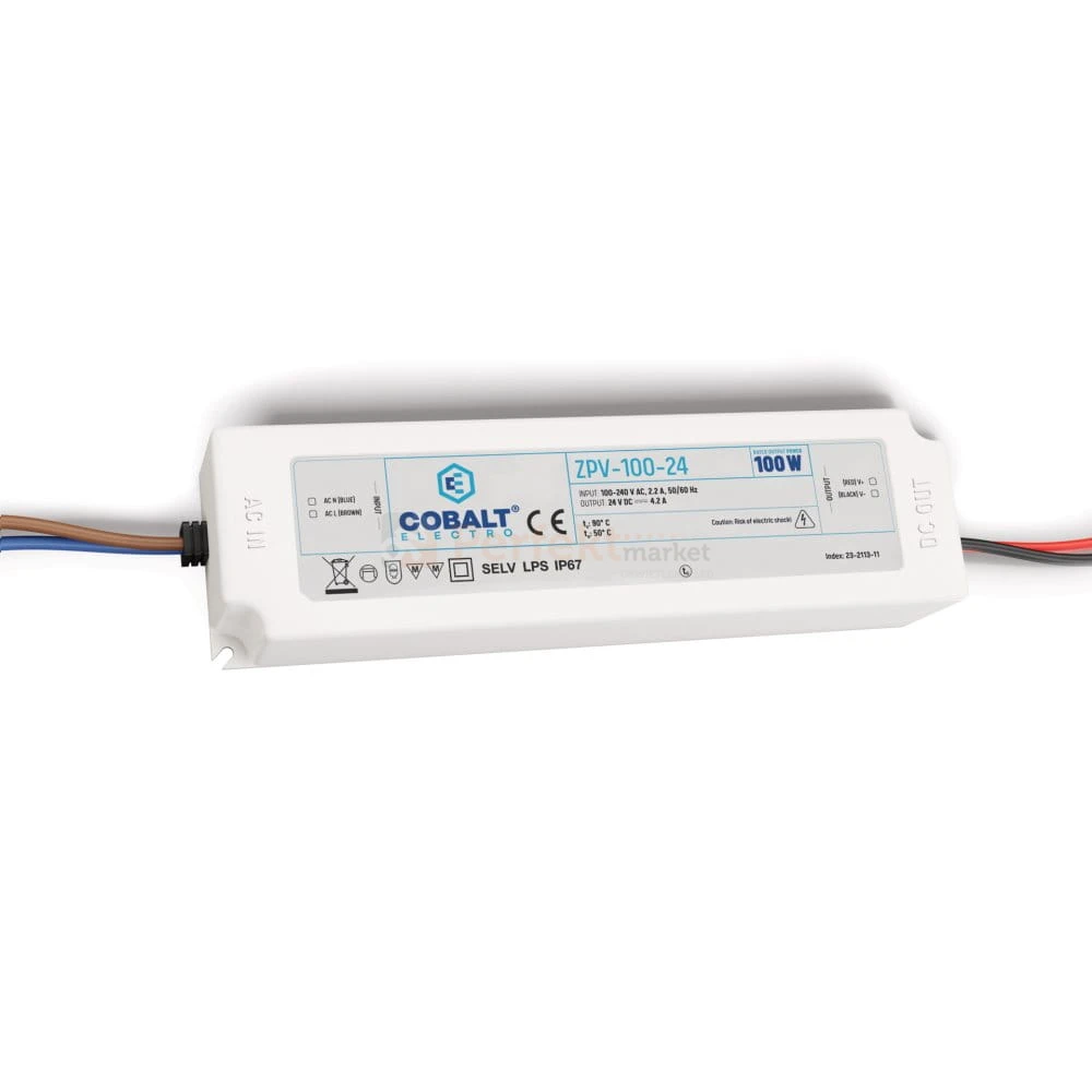 Seria stałonapięciowych zasilaczy ZPV hermetycznych dzięki klasie ochrony IP67 jest przeznaczona do instalacji zewnętrznych oraz do pomieszczeń, gdzie mamy do czynienia z wysokim poziomem wilgotności. Zasilacz przemienia prąd sieciowy 230V na napięcie stałe 24V, które jest wymagane między innymi do instalacji oświetlenia LED.