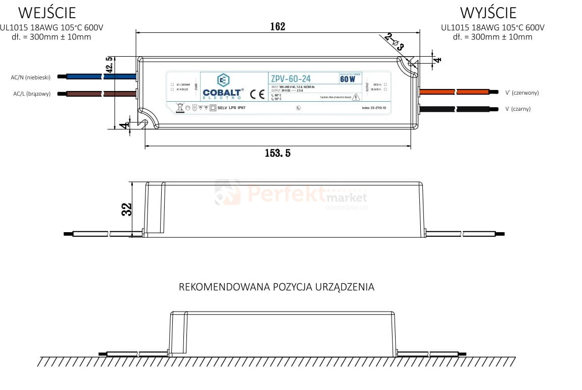 - Typ: zasilacz hermetyczny stałonapięciowy