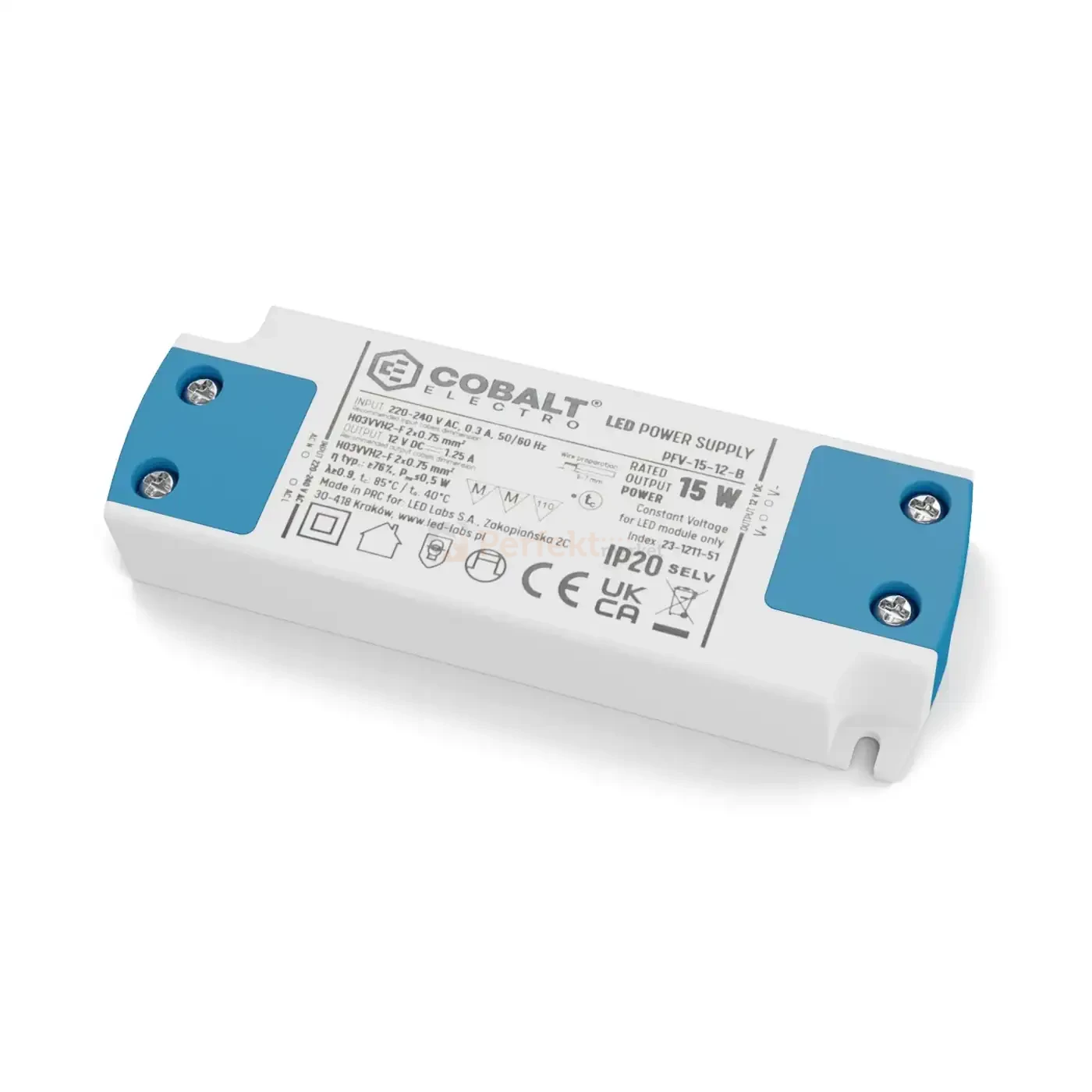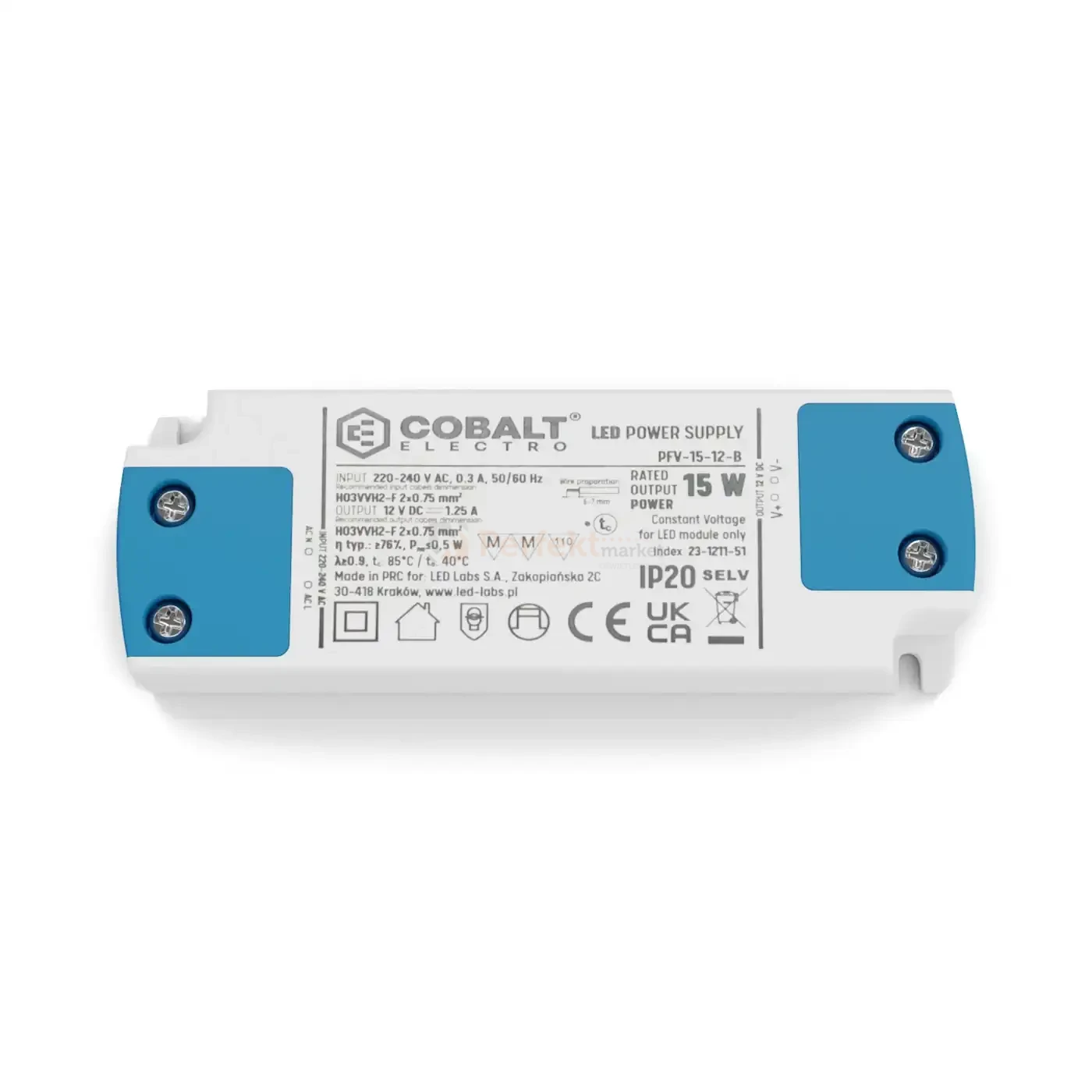 Zasilacz meblowy impulsowy 12V DC 15W 1,25A IP20 SELV PFV-15-12-B