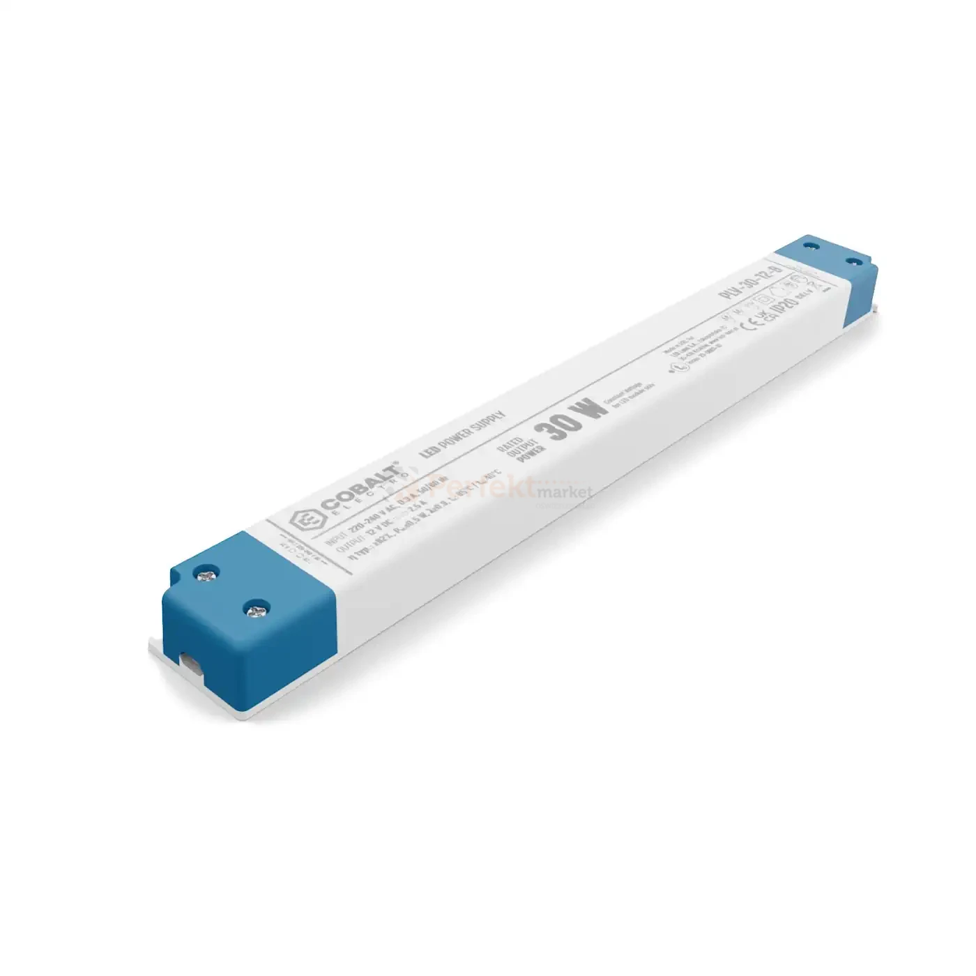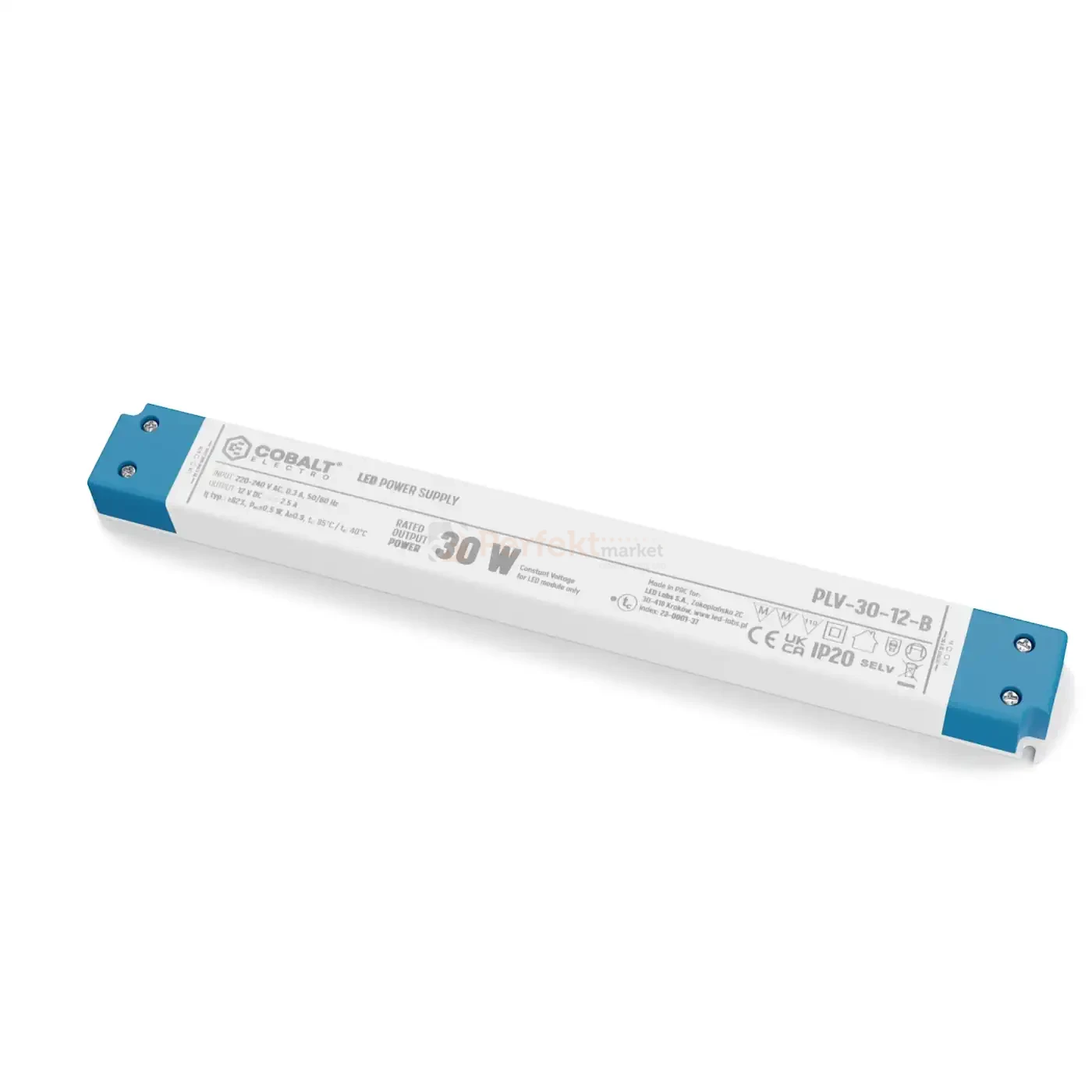 Seria stałonapięciowych zasilaczy meblowych PLV marki Cobalt Electro przeznaczona jest do instalacji wewnętrznych wszędzie tam gdzie rozmiar zasilacza ma znaczenie. Dzięki płaskiej wydłużonej obudowie i stosunkowo niewielkiej wadze, zasilacz znajdzie zastosowanie w najbardziej wymagających przestrzeniach, szczególnie w miejscach bardzo wąskich. Poza niewielkim rozmiarem, zasilacz charakteryzuje wysoka sprawność i optymalny wzrost temperatury w czasie pracy, co przekłada się na zminimalizowanie zużycia energii elektrycznej oraz wydłuża żywotność zasilacza.