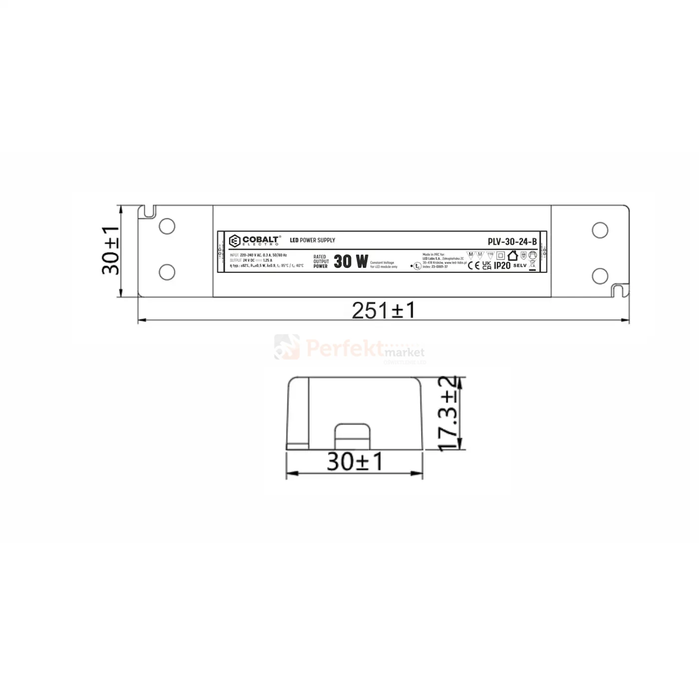Zasilacz meblowy wersja SLIM/LONG impulsowy 12V DC 30W 2,5A IP20 SELV PLV-30-12-B