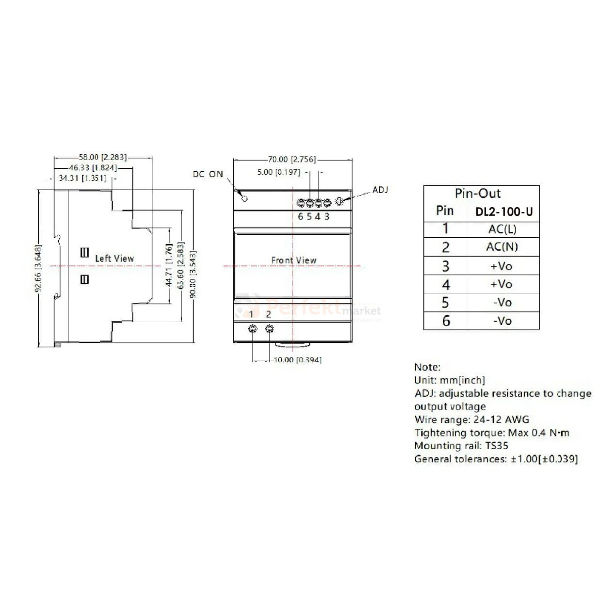 Zasilacz na szynę DIN DL2-100-12-U 12V 7.5A 90W