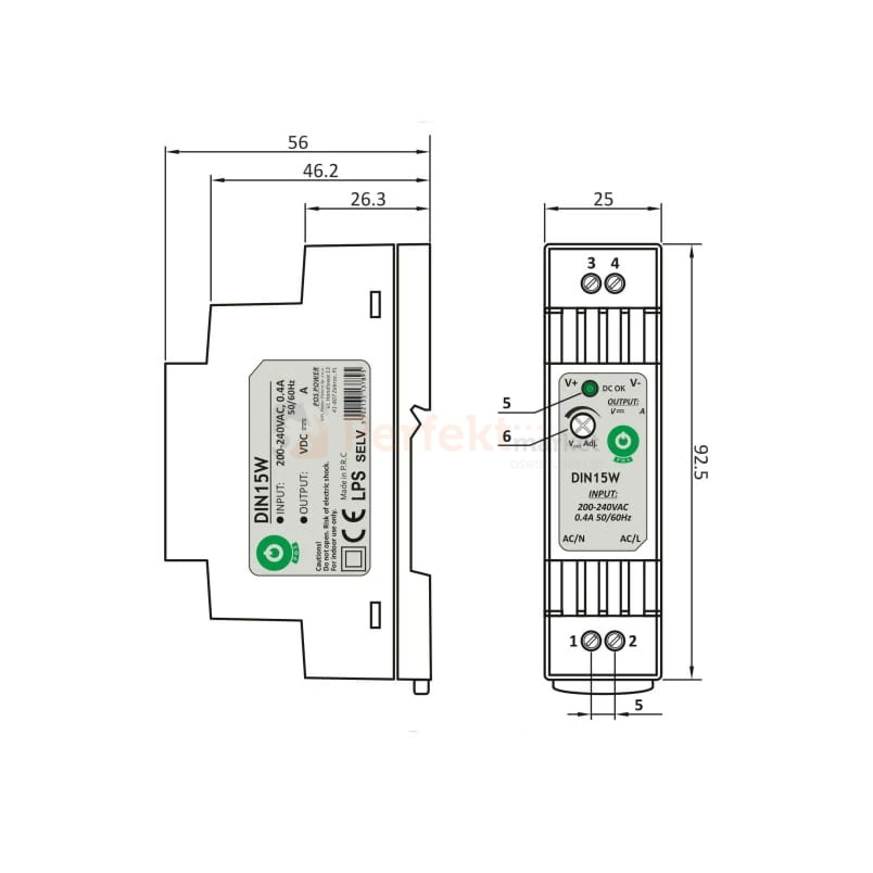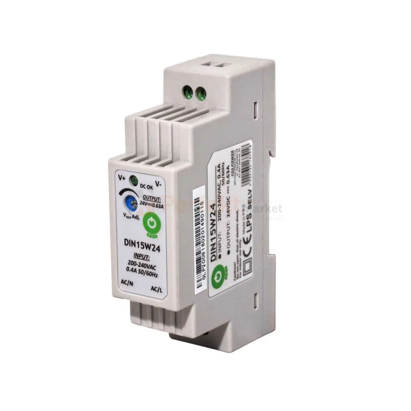 Zasilacz POS POWER DIN15W24 na szynę DIN. 24V, 0.63A, 15W