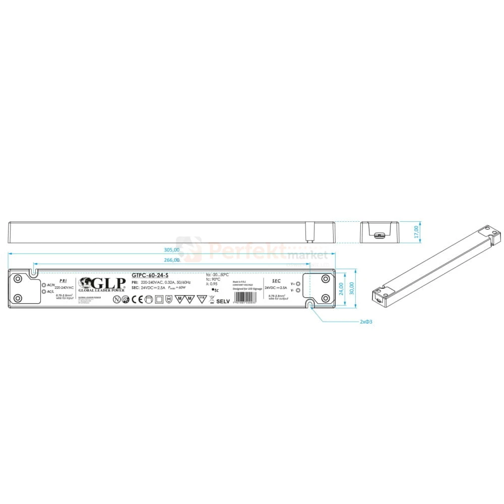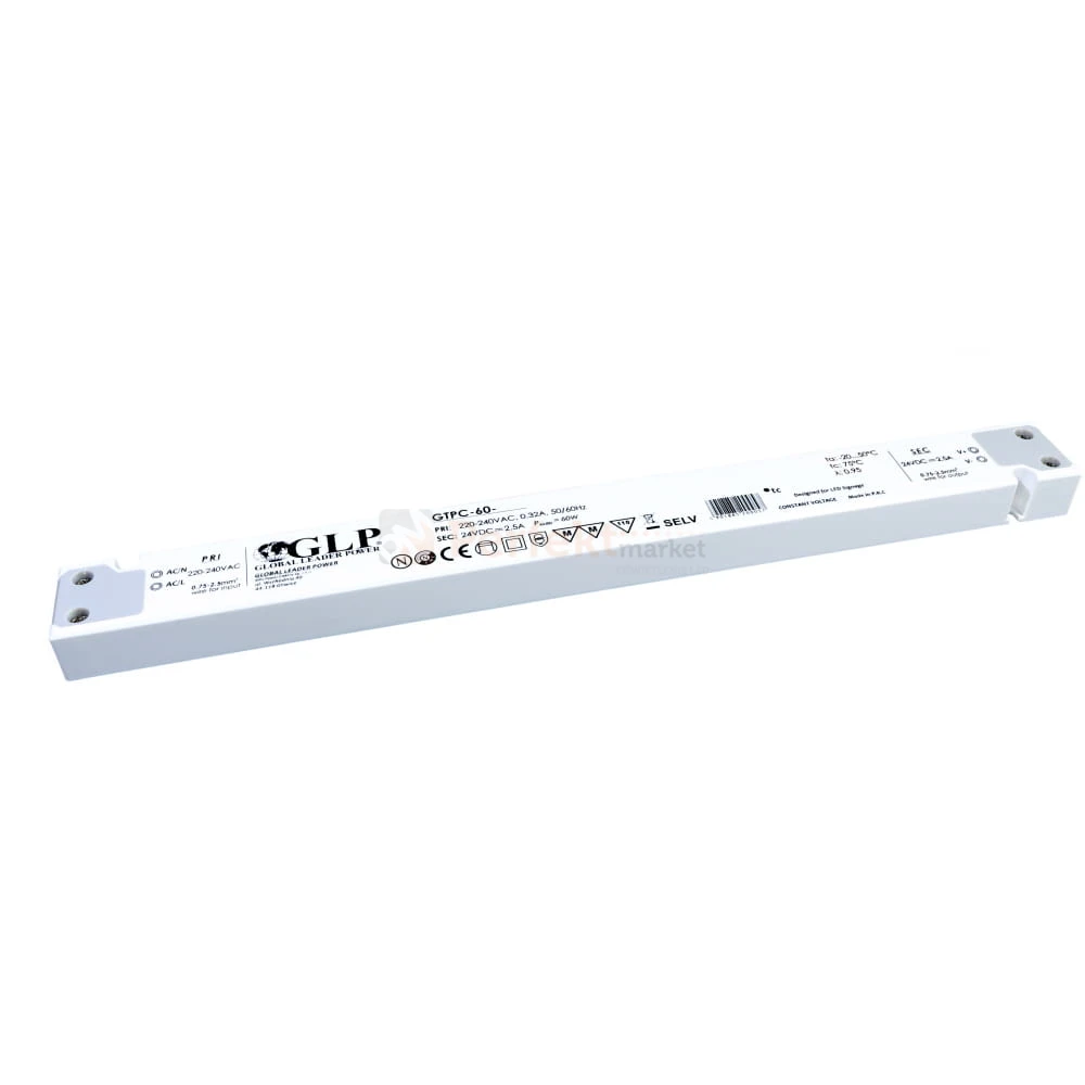 Seria stałonapięciowych zasilaczy marki GLP seria GTPC charakteryzuje się bardzo wąskim profilem obudowy. Przeznaczona do instalacji wewnętrznych oraz do miejsc, gdzie ważna jest wysokość i szerokość zasilacza. Zasilacz przemienia prąd sieciowy 230V na napięcie stałe 12V, które jest wymagane między innymi do instalacji oświetlenia LED.