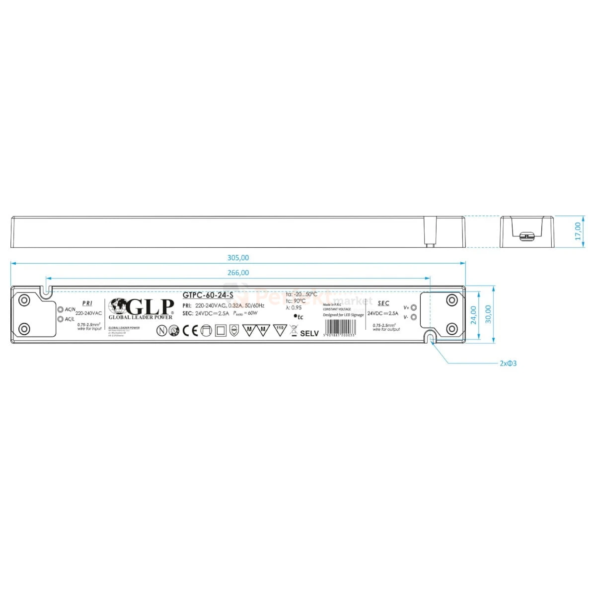 Zasilacz ultra płaski SLIM GLP 24V 60W 2,5A GTPC-60-24-S