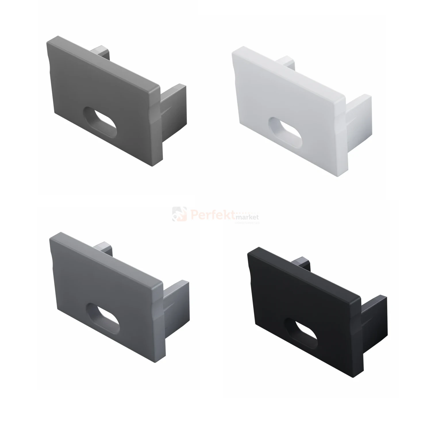 Zaślepki wykonane z tworzywa sztucznego (ABS) są niezbędnym elementem wykończenowym do profili LED do płytek/gresu. Zaślepki w wersji z otworem na przewód zasilający.