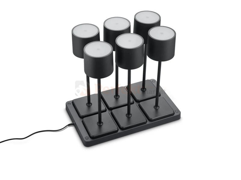 Zestaw lamp stołowych ze stacją ładującą Fernandez 6 sztuk czarne IP54 CCT R54096632