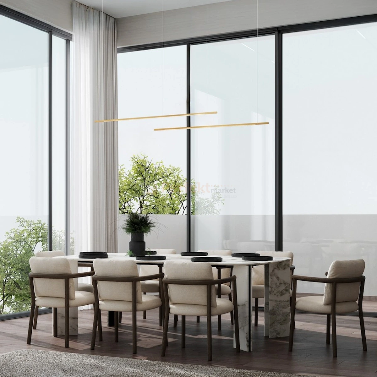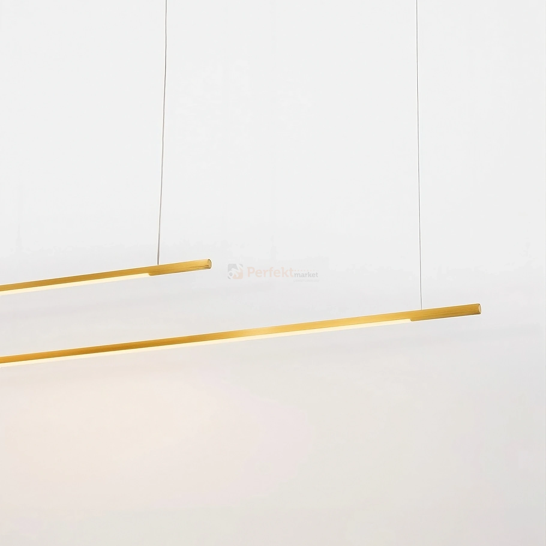 Podłużna lampa wisząca złota MONTERZO Duo to więcej niż oświetlenie – to element, który buduje nastrój, przyciąga wzrok i definiuje charakter wnętrza.