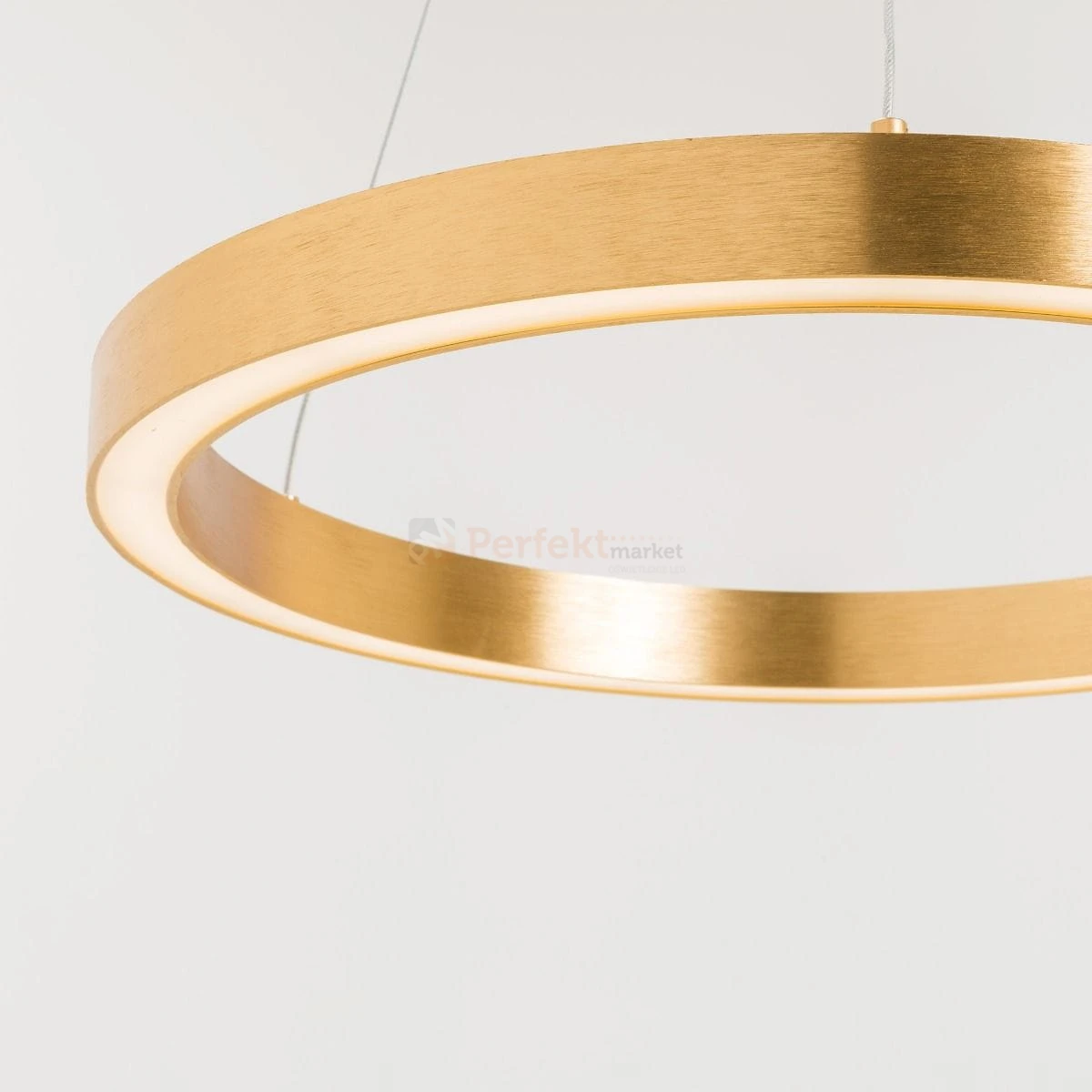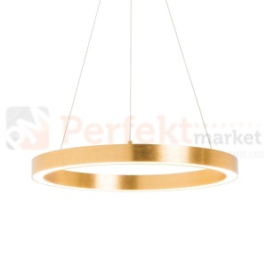 Nowoczesna złota wisząca lampa LED w kształcie okręgu. Świecący ring w kolorze złotym nada blasku każdemu wnętrzu. W oprawie zastosowano nowoczesny moduł LED o mocy 50W osiągający strumień świetlny na poziomie 4000 lm (jak 4 żarówki 75W). Lampa zwieszana na stalowych linkach z możliwością regulacji wysokości.