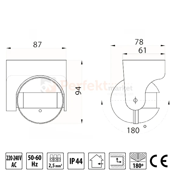 Mikrofalowy czujnik ruchu o kącie widzenia 180°.Natynkowy czujnik ruchu przeznaczony jest do pracy wewnątrz pomieszczeń. Czujnik posiada regulajcę czasu działania w zakresie 10 sek. (+/- 3 s.) - 10 min. oraz natężenia światła 3-2000 LUX, przy którym to następuje aktywowanie czujnika.