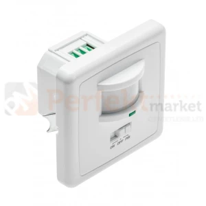 Pasywny czujnik podczerwieni a kącie widzenia 160°.Podtynkowy czujnik ruchu przeznaczony jest do pracy wewnątrz pomieszczeń. Sensor ruchu działa na zasadzie wykrywania fal podczerwonych emitowanych przez ludzi. Pasywny czujnik podczerwieni PIR posiada regulację czasu działania w zakresie 10 sek. - 7 min. Regulowana czułość mikrofonu od 30 db do 90 db.