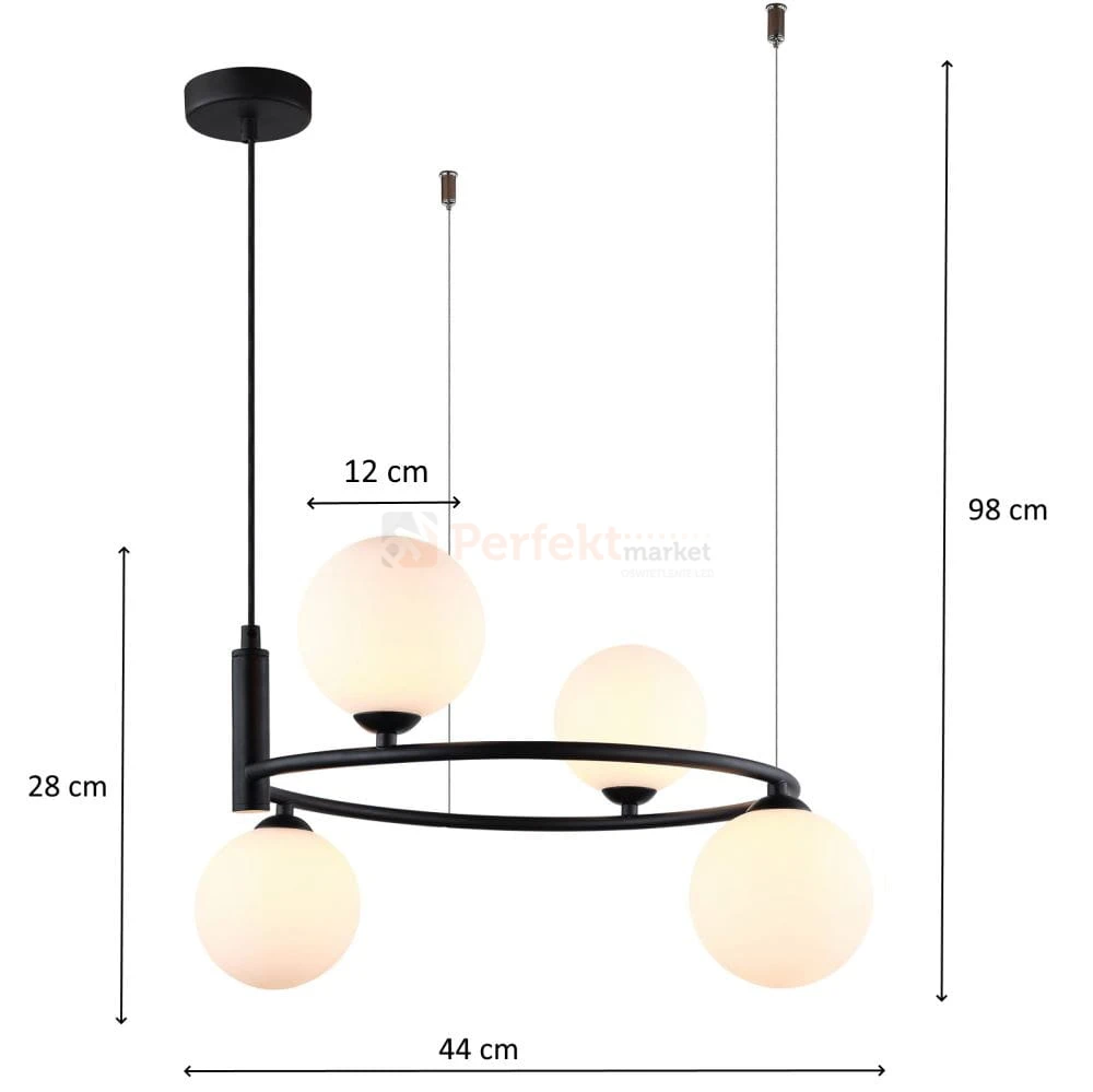 Italux Amily MDM-3974/4 BK lampa wisząca czarna mleczne kule