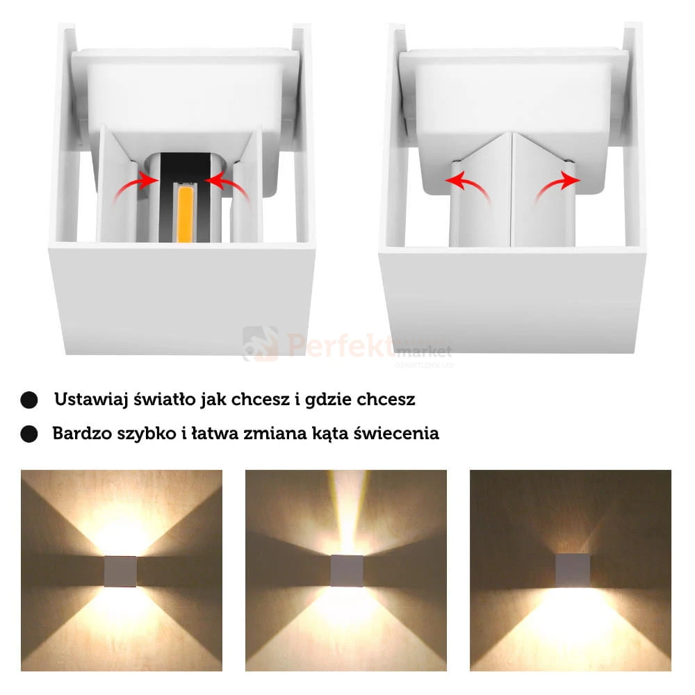 Zewnętrzny kinkiet ścienny LED, elewacyjny LEO z możliwością regulacji kąta świecenia.