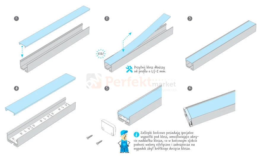 Bardzo wygodny sposób montowania na wcisk od frontu profilu.