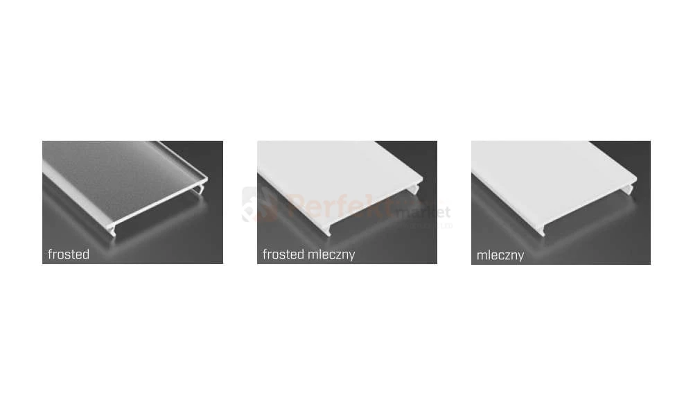- mleczny - biała przesłonka - wnętrze profilu jest niewidoczne, bardzo dobrze rozprasza punkty świetlne.