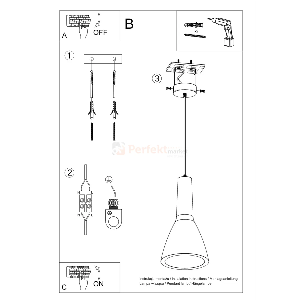 | Moc źródła światła: | 1 x 60W (brak w komplecie) |