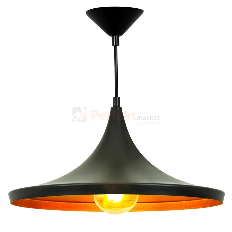 Seria wyjątkowych lamp wiszących o designerskim wyglądzie i wysokim standardzie wykonania. Lampy wykonane z wysokiej jakości metalu malowanego proszkowo. Zewnętrzna czarna matowa powierzchnia lampy kontrastuje ze złotym, błyszczącym wnętrzem, z którego wydobywa się wyjątkowo ciepłe i miękkie światło. Lampy można komponować ze sobą w dowolnych konfiguracjach zależnie od upodobania.
