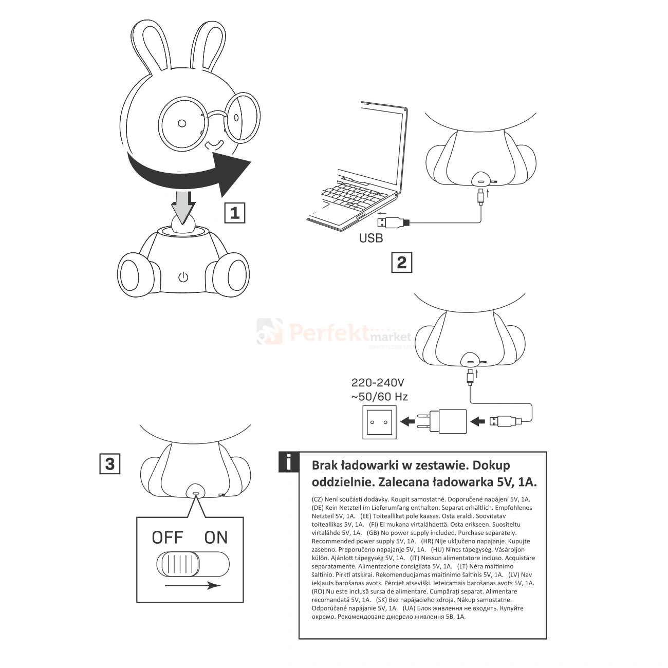 - Zasilacz sieciowy nie jest dołączony – należy dokupić oddzielnie