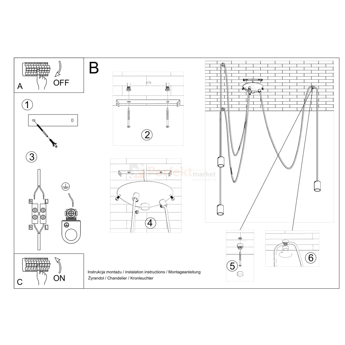 Model został wyposażony w trzy gniazda E27, co umożliwia montaż żarówek LED o mocy do 15W każda. Brak wbudowanych kloszy pozwala na pełną swobodę w doborze kształtu i barwy światła, co bezpośrednio wpływa na atmosferę wnętrza.