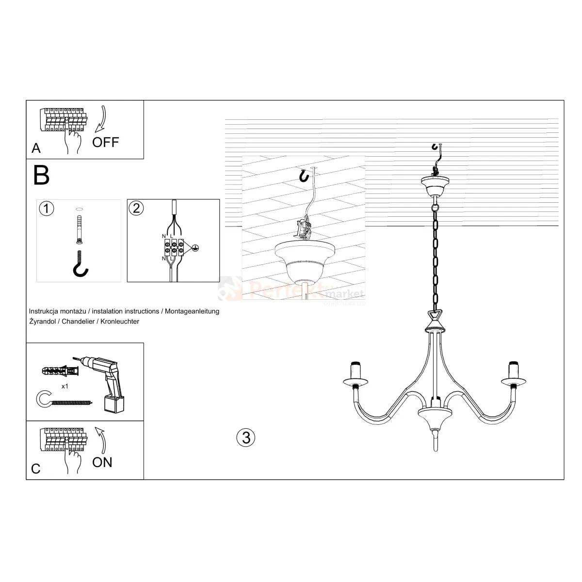 Żyrandol świecznikowy Sollux Minerwa 3 3xE14 SL.0213 IP20 – biały