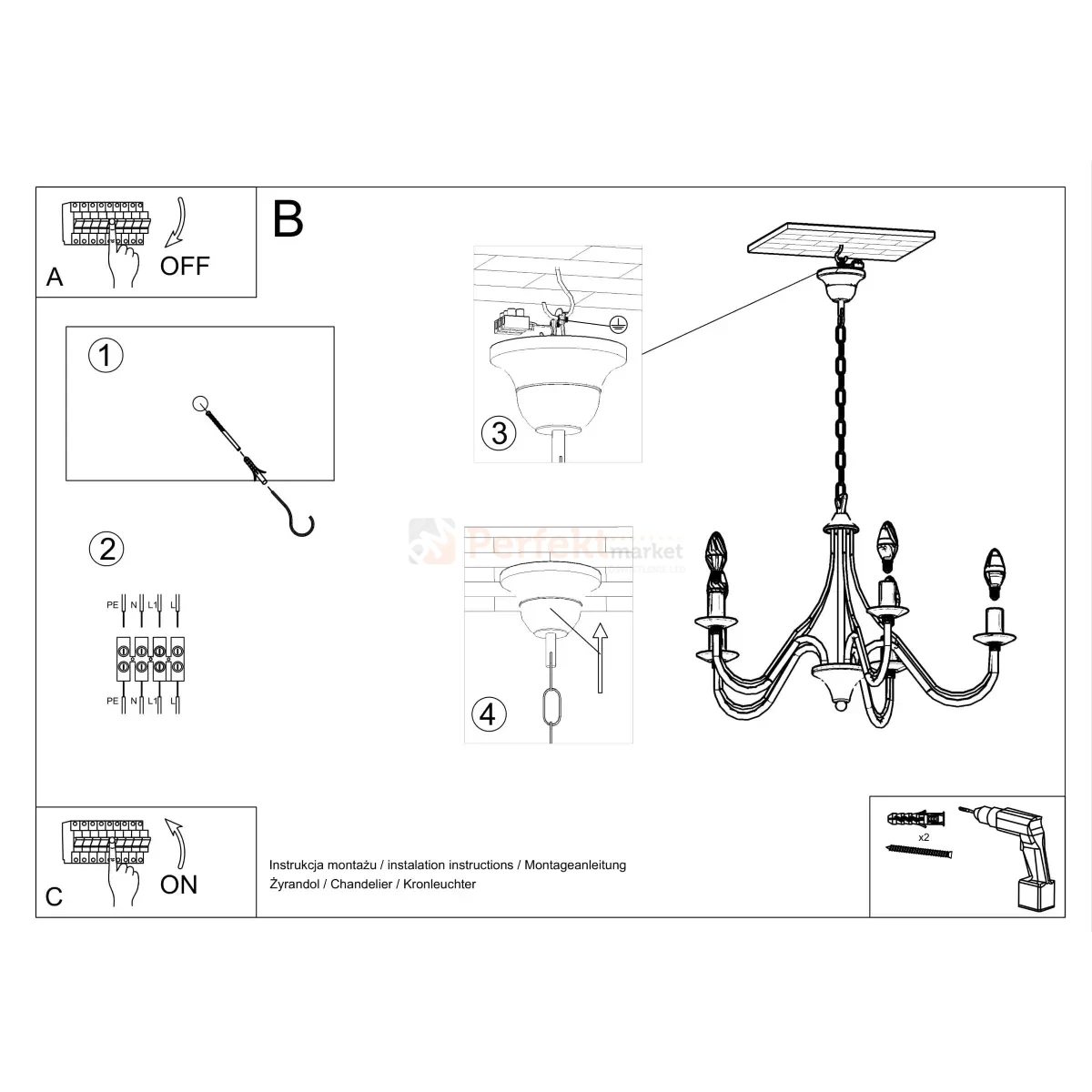 - Typ: żyrandol