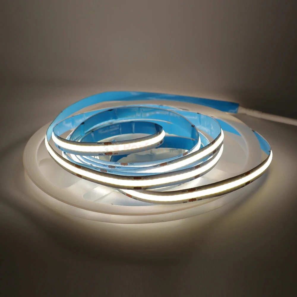 Profesjonalna taśma LED COB 2640 LED na podwójnym wzmacnianym podkładzie PCB 3oz to jeden z najnowszych modeli taśm. Dzięki bardzo dużej ilości diod, możliwe jest uzyskanie jednolitej linii świetlnej nawet przy niskich profilach aluminiowych. Wysoki współczynnik oddawania barw CRI Ra>90 gwarantuje pięknie odwzorowane kolory oświetlanych przedmiotów, wnętrz.