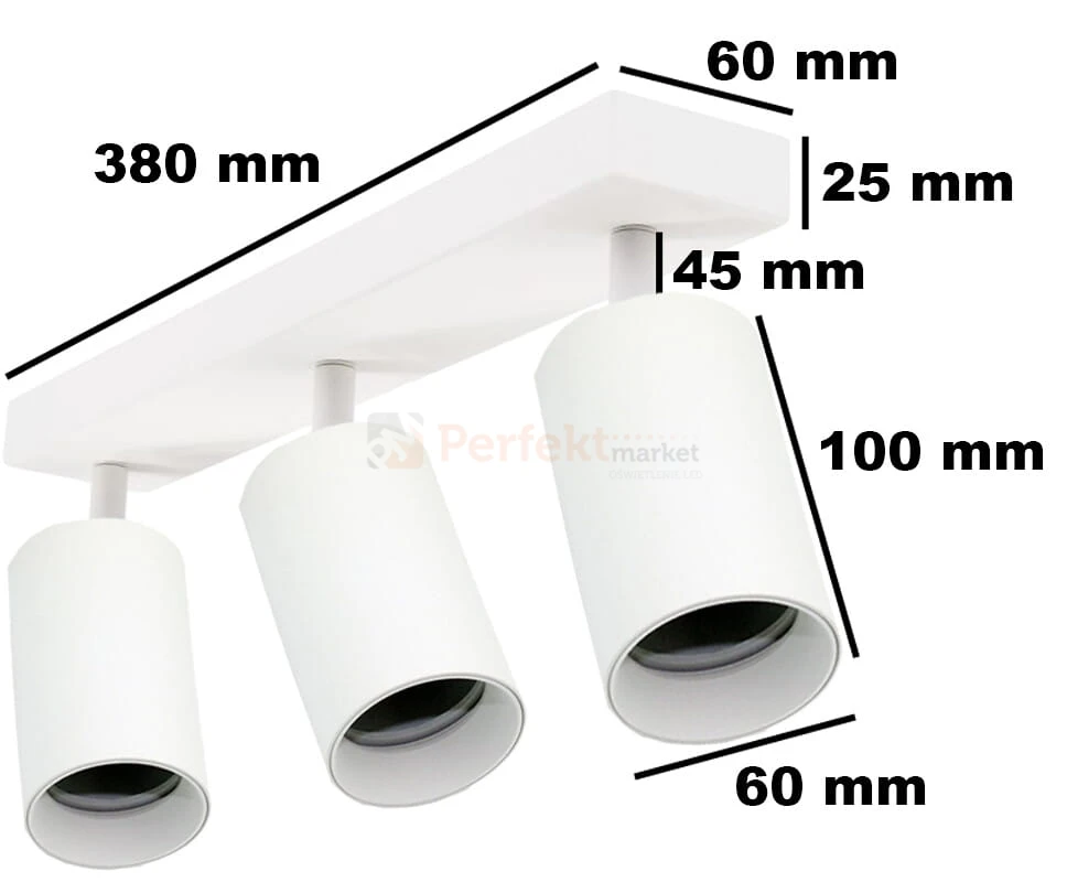 Lampa sufitowa spot potrójny na listwie 3xGU10 Qualis biały