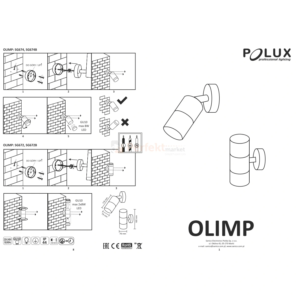 - typ oprawy kinkiet ścienny / elewacyjny