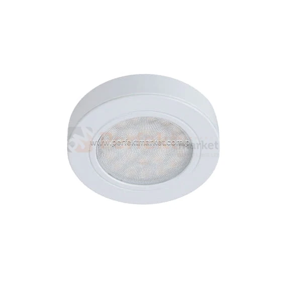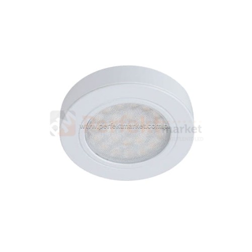 Oprawa meblowa LED w kolorze białym z pierścieniem montażowym umożliwiającym instalację oprawy bez wiercenia otworów w płytach MDF, KG. Wysokiej jakości oprawa meblowa wykonana z aluminium. Jej jakość potwierdzają europejskie certyfikaty CE i RoHS oraz aż 4 letnia gwarancja.